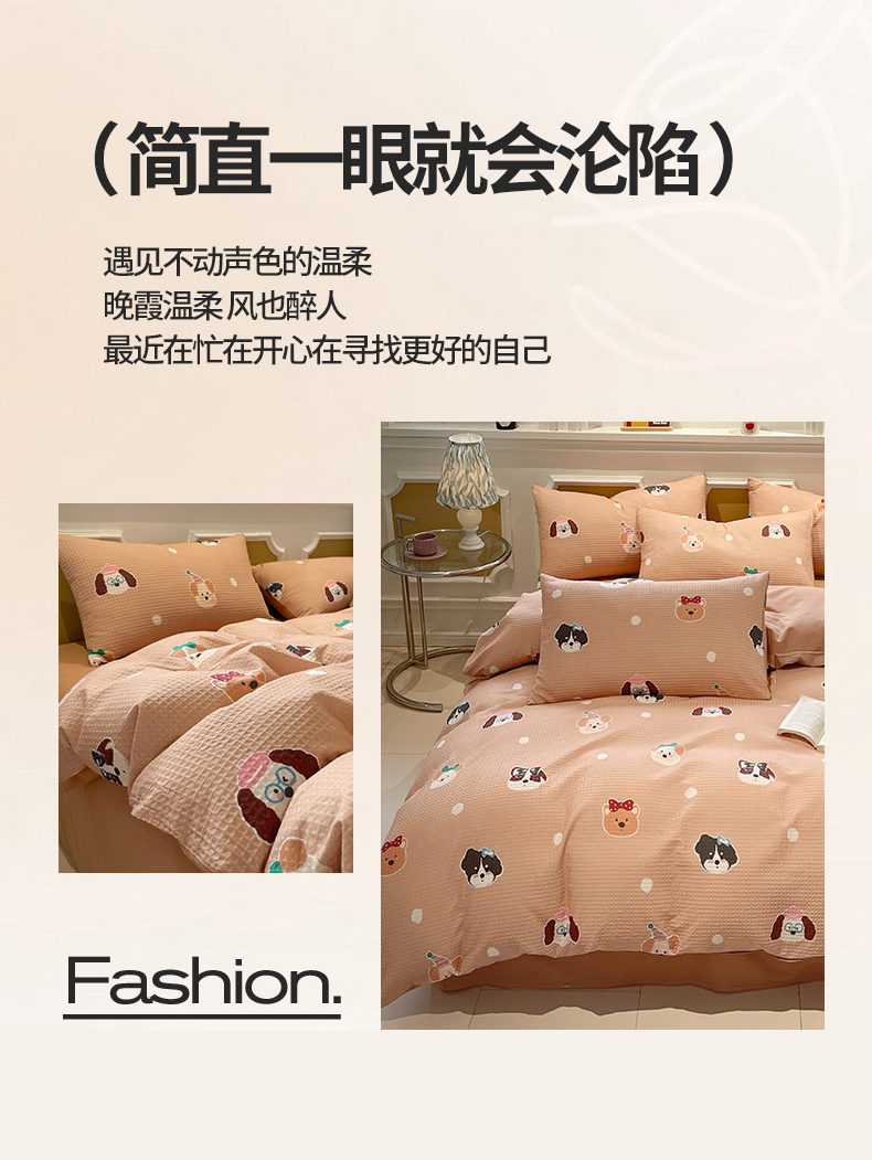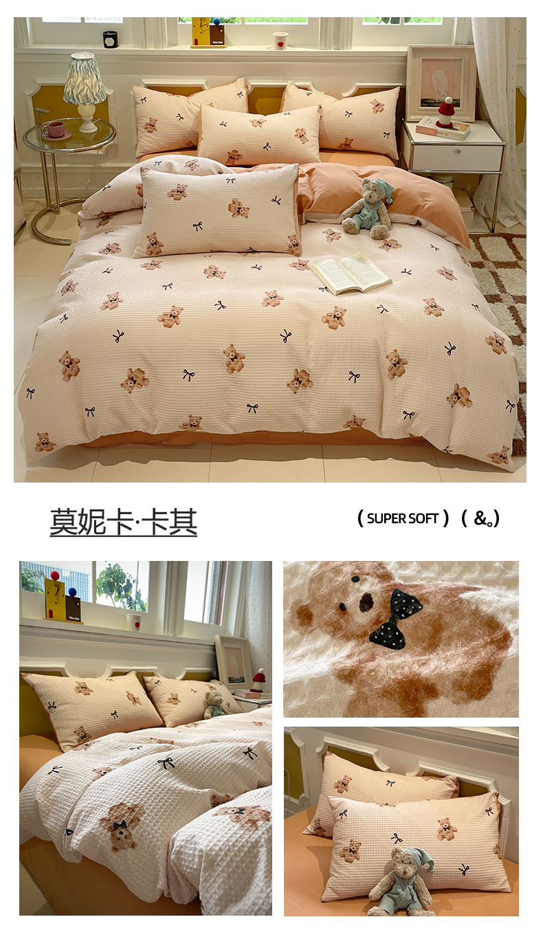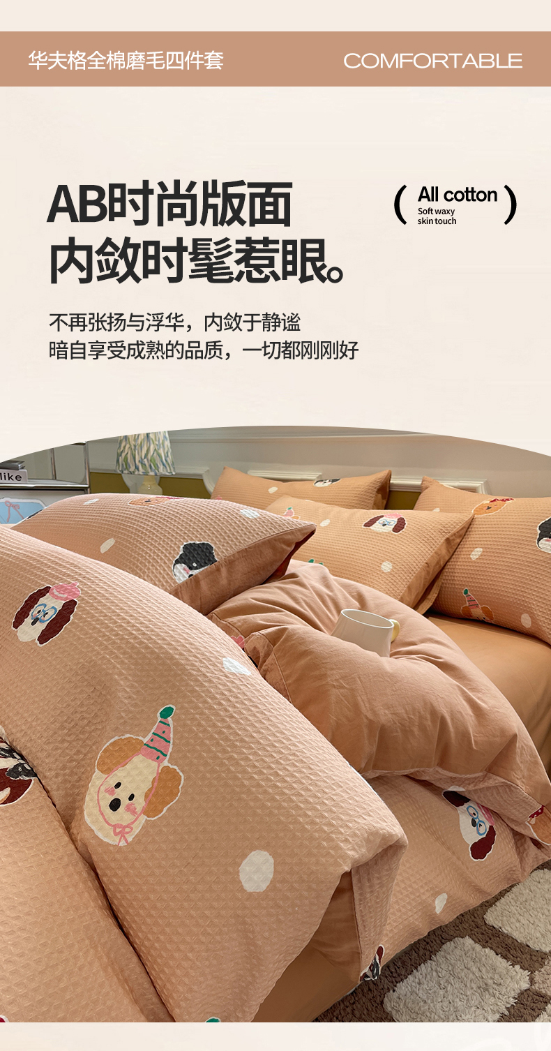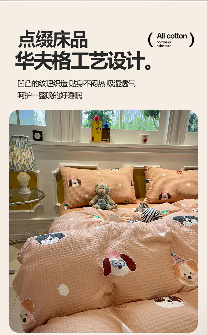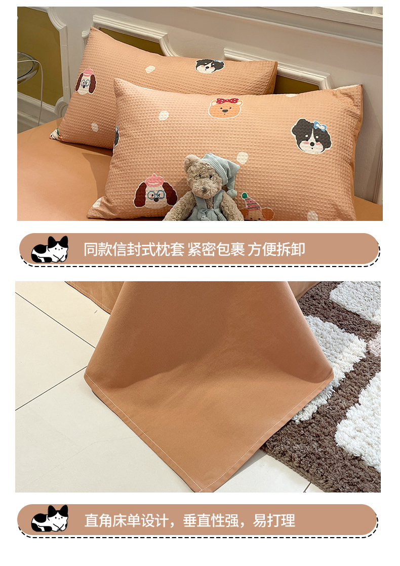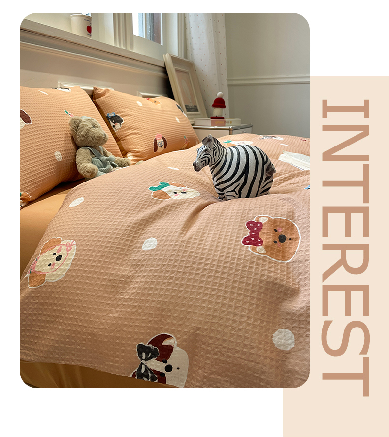 当前位置: 91家纺网 > 商品网购 > 床品套件 > 四件套 > 全棉普通四件套 > 小叮当家纺仓储工厂店 2025新款提供买家秀爆款花型不断货全棉纯棉A类华夫格印花磨毛四件套 动物派对-棕