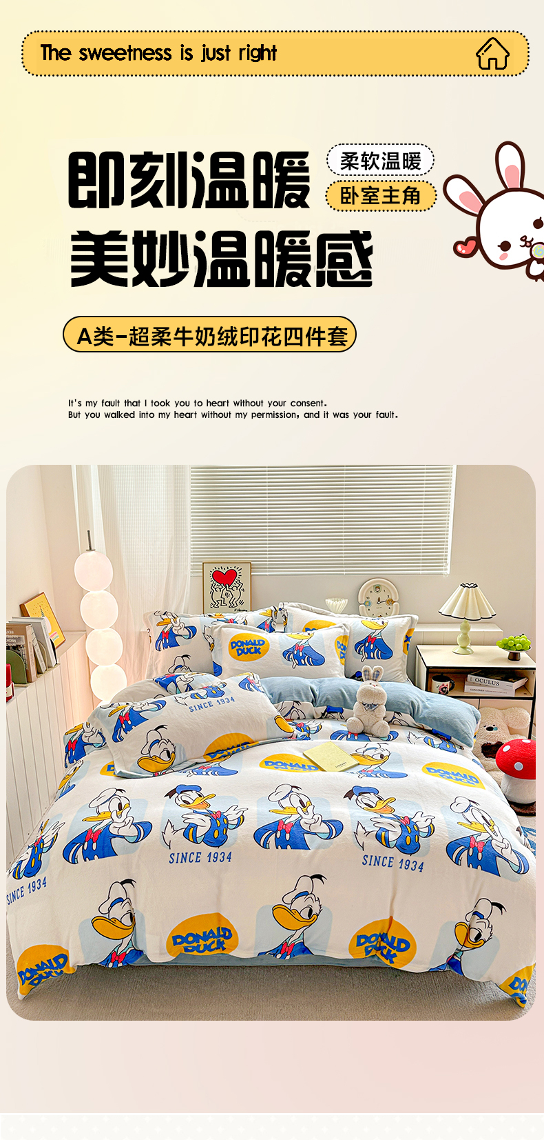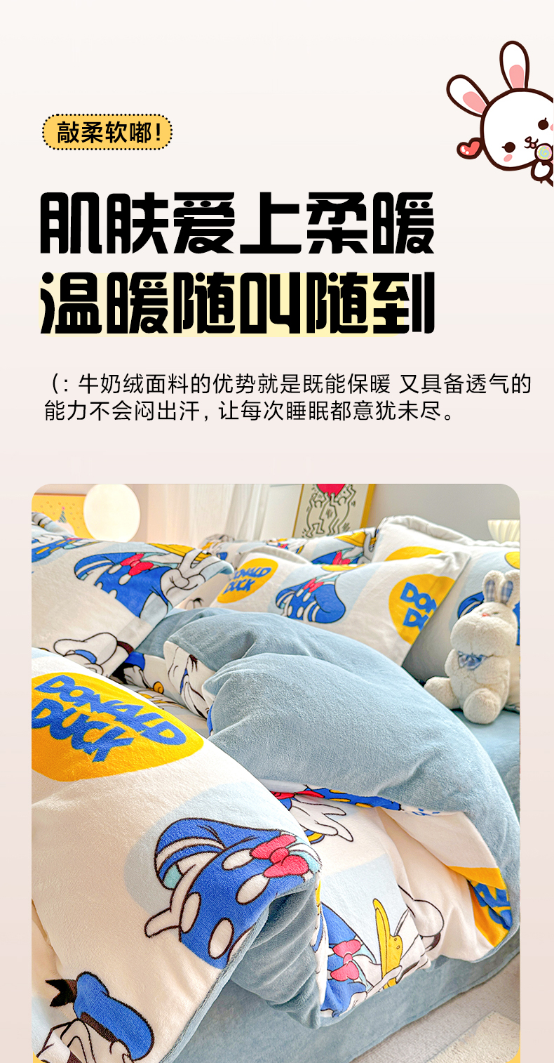 当前位置: 91家纺网 > 商品网购 > 床品套件 > 四件套 > 牛奶绒四件套 > 简一 2025新款小清新牛奶绒印花四件套-卡通系列 唐老鸭