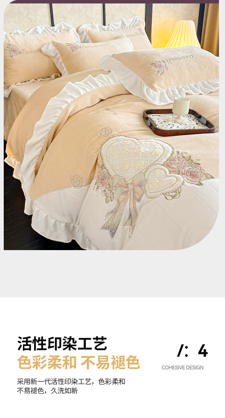 (总)七七家纺 2025新款雕花牛奶绒夹棉床盖四件套-若梦系列,若梦-薄荷绿,若梦-豆绿,若梦-鹅黄,若梦-粉玉,若梦-雪峰白
