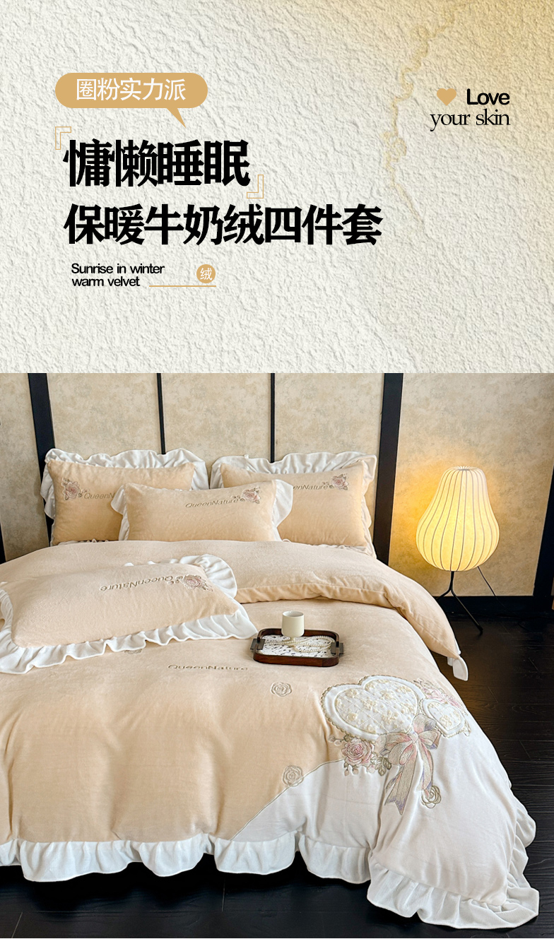 (总)七七家纺 2025新款刺绣款牛奶绒四件套-织梦系列,织梦-粉,织梦-豆沙,织梦-黄,织梦-水绿,织梦-天蓝,织梦-紫