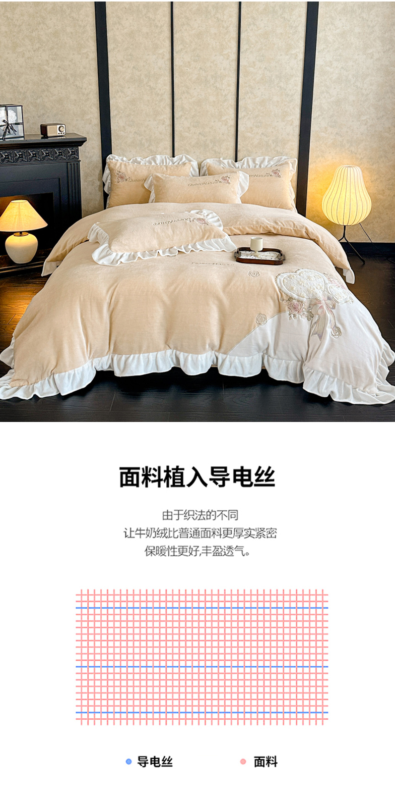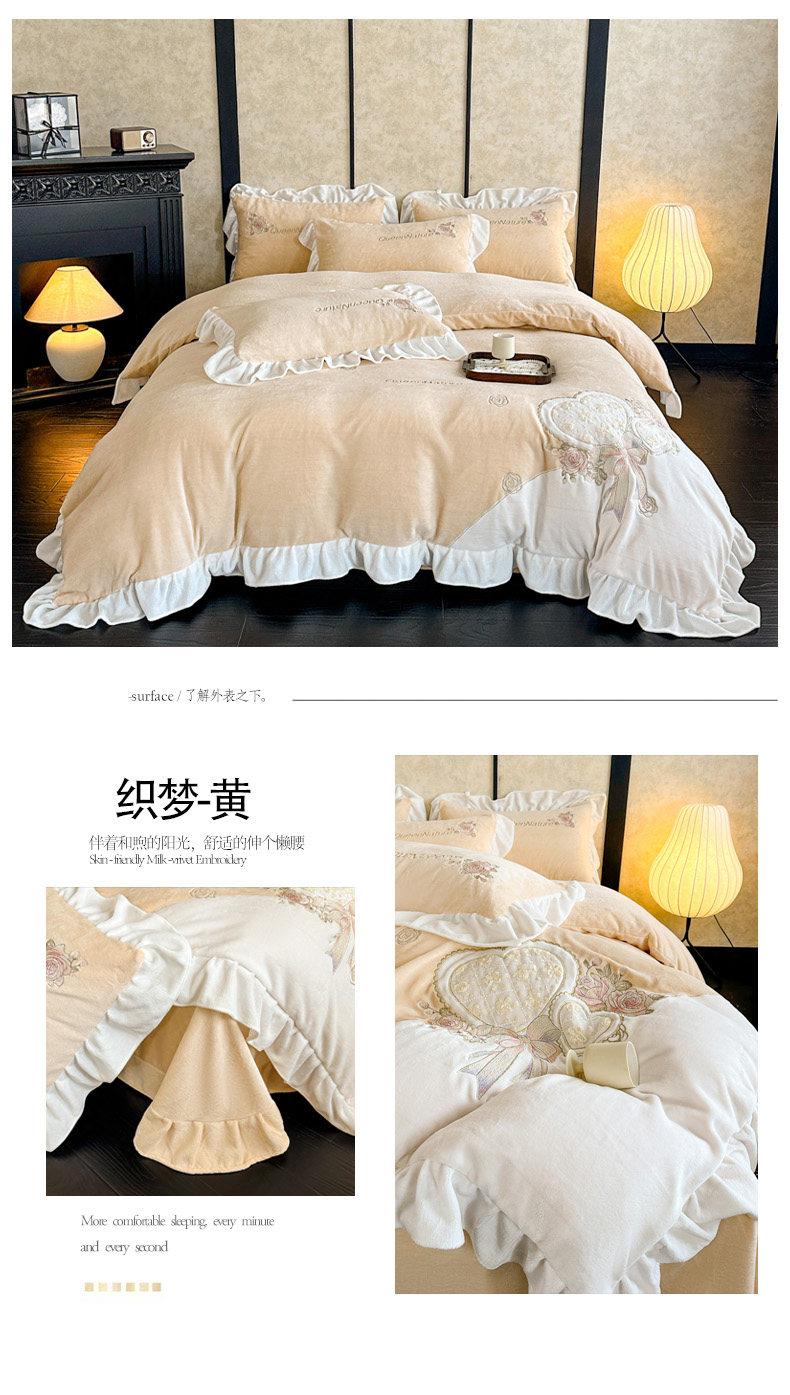 商品名称:七七家纺 2025新款刺绣款牛奶绒四件套-织梦系列 织梦-黄