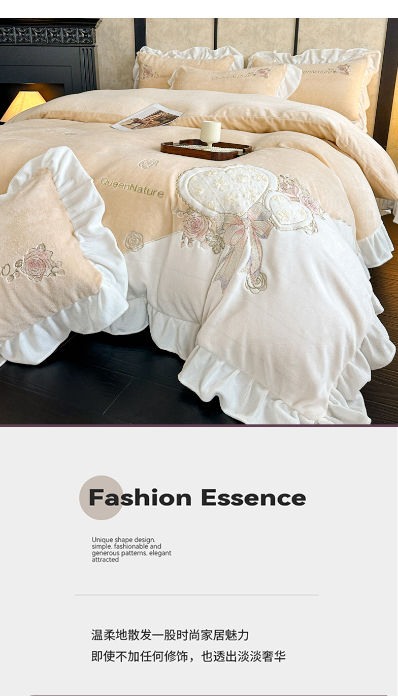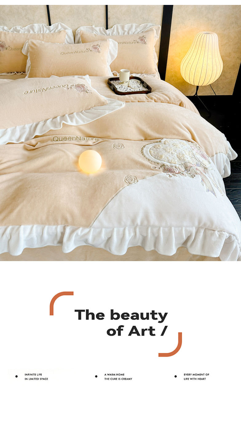 七七家纺 2025新款刺绣款牛奶绒四件套-织梦系列 织梦-黄