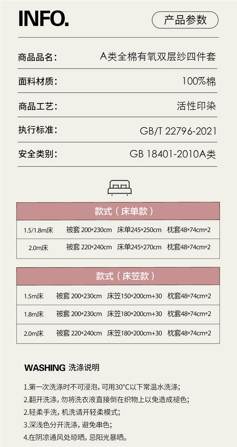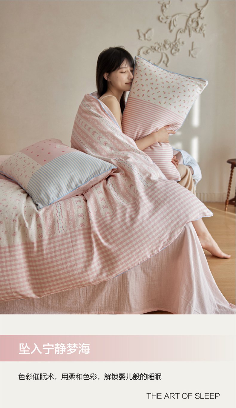 商品名称:风向标家纺 2025新款A类全棉双层纱四件套-云羽织梦系列 云羽织梦-雾粉