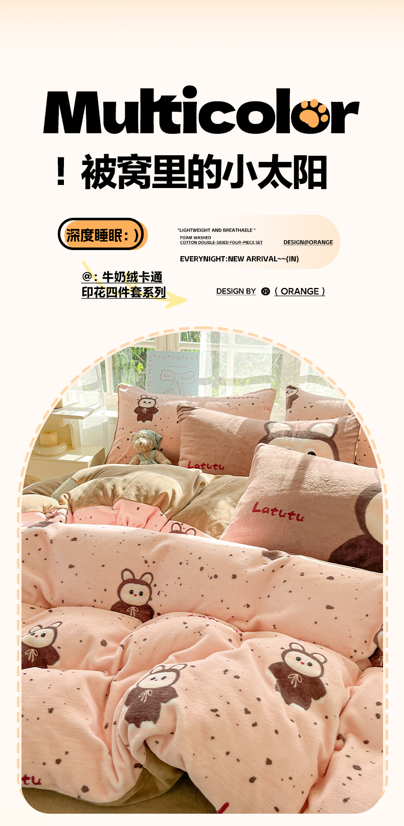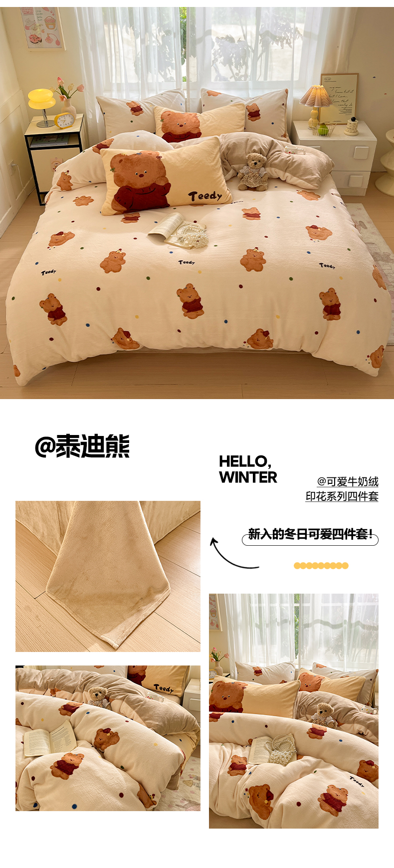 (总)如一 2025新款高克重大版数码印花牛奶绒四件套,毛毛狗,猫咪酱,俏皮狗,色彩猫,小熊仔,熊猫咖,游乐园,粉伙伴,拉兔咖,萌宠黄,萌宠绿,萌派对,围巾狗,线条狗,小粉喵,小花喵,小伙伴