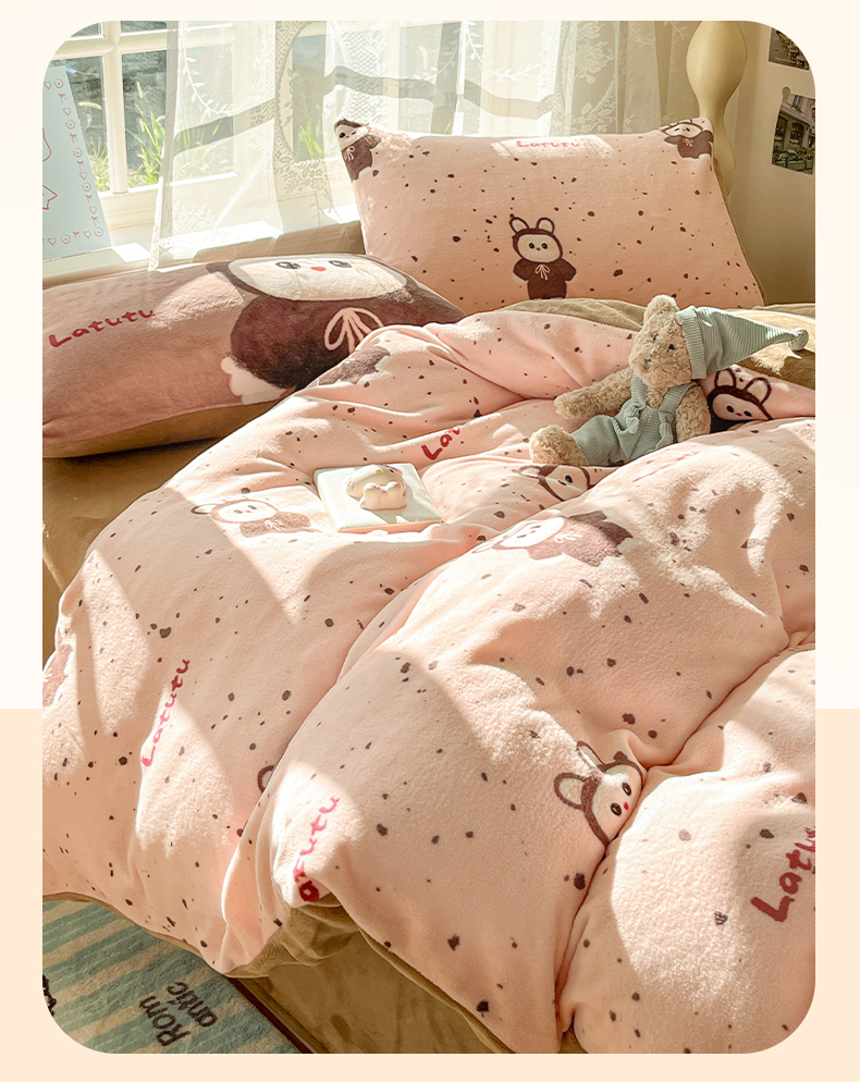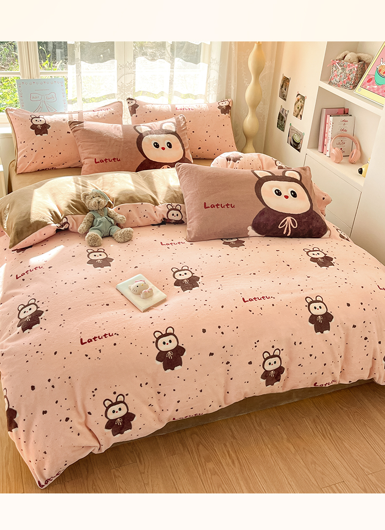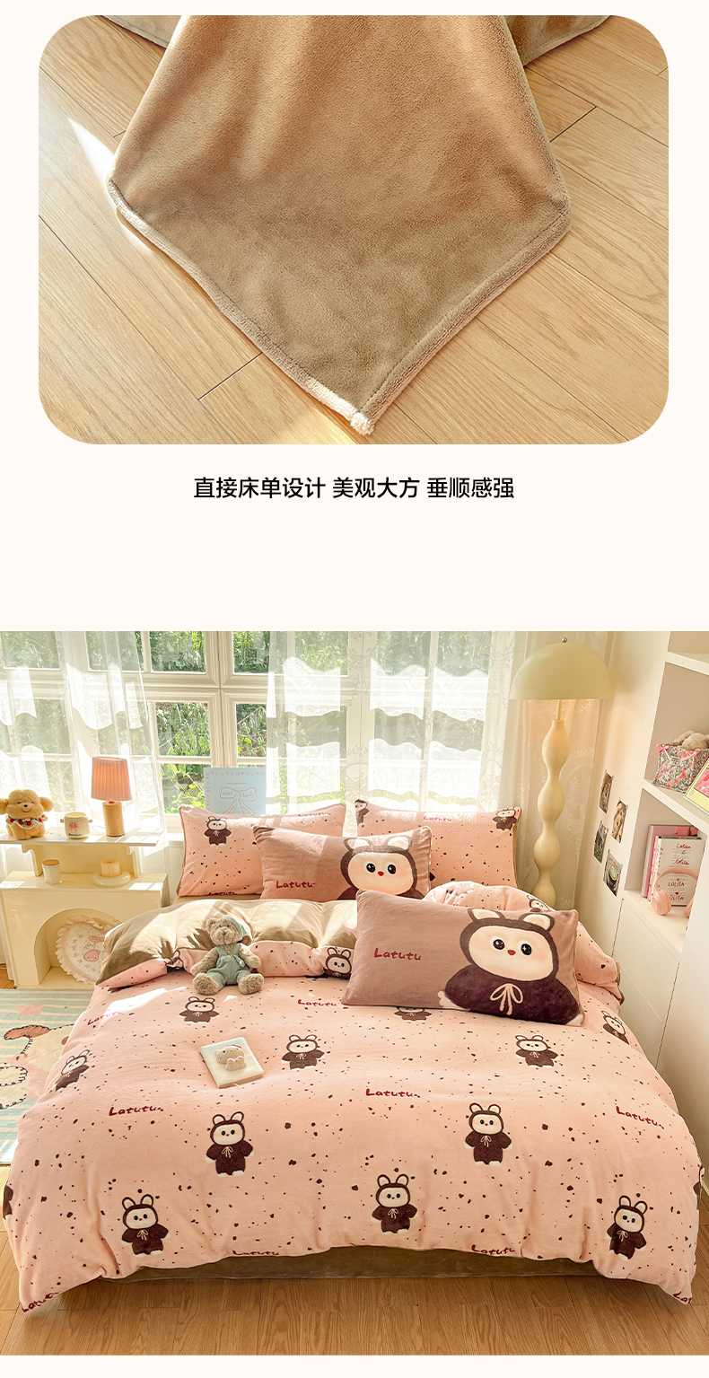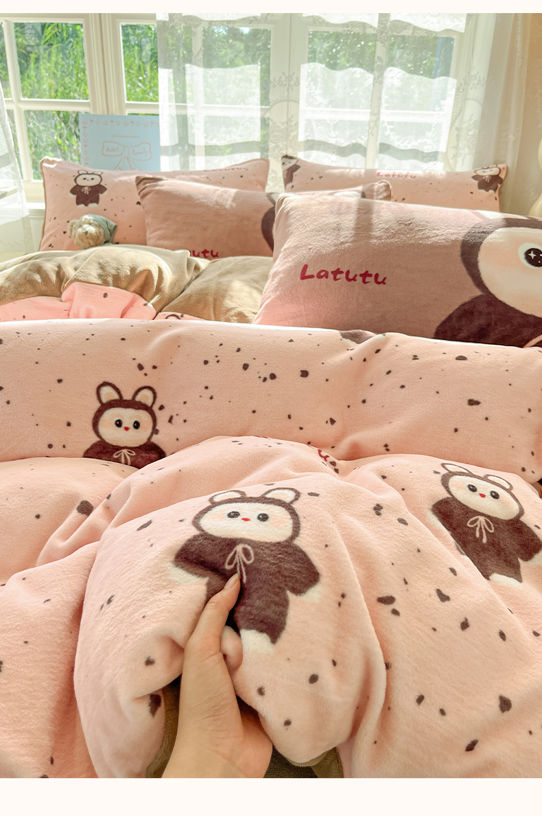 如一 2025新款高克重卡通印花牛奶绒四件套第三批 拉兔粉