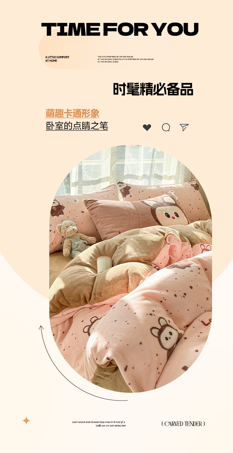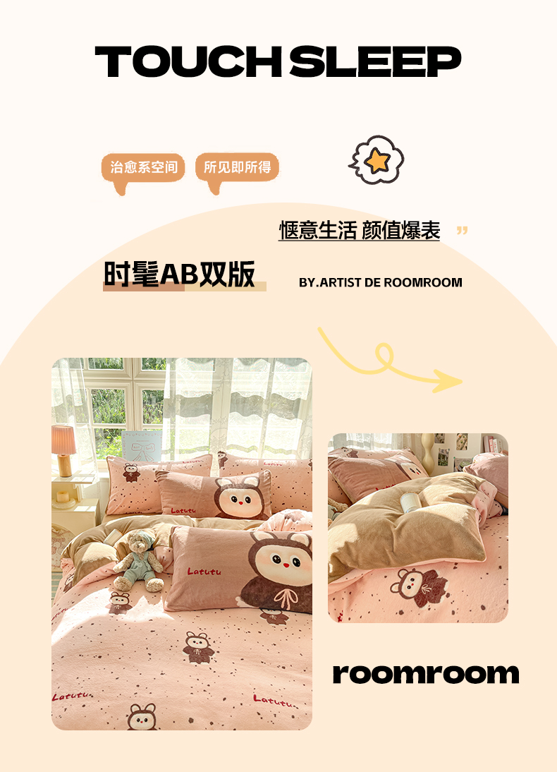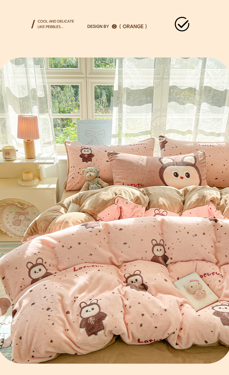 如一 2025新款高克重卡通印花牛奶绒四件套第三批 拉兔粉