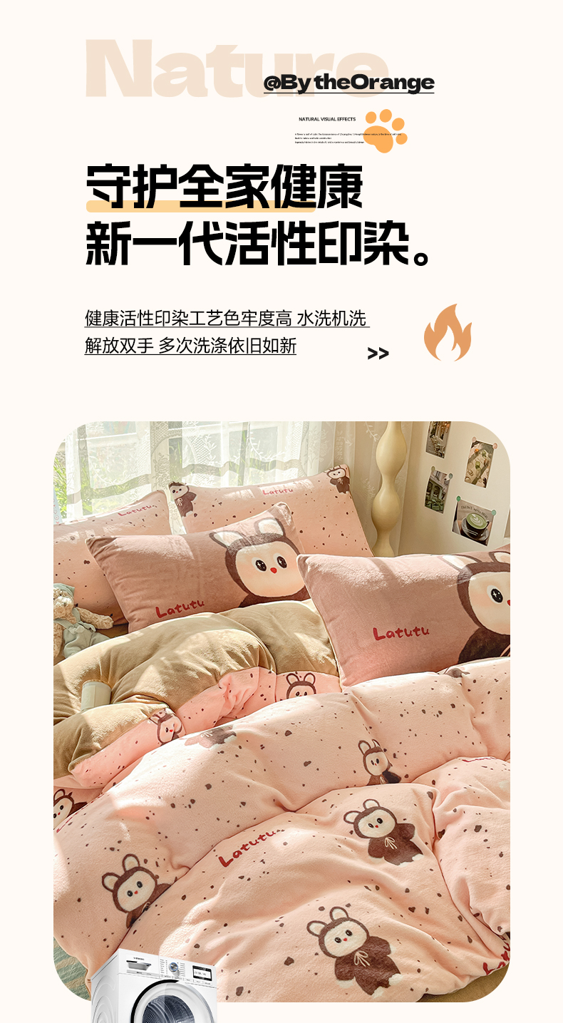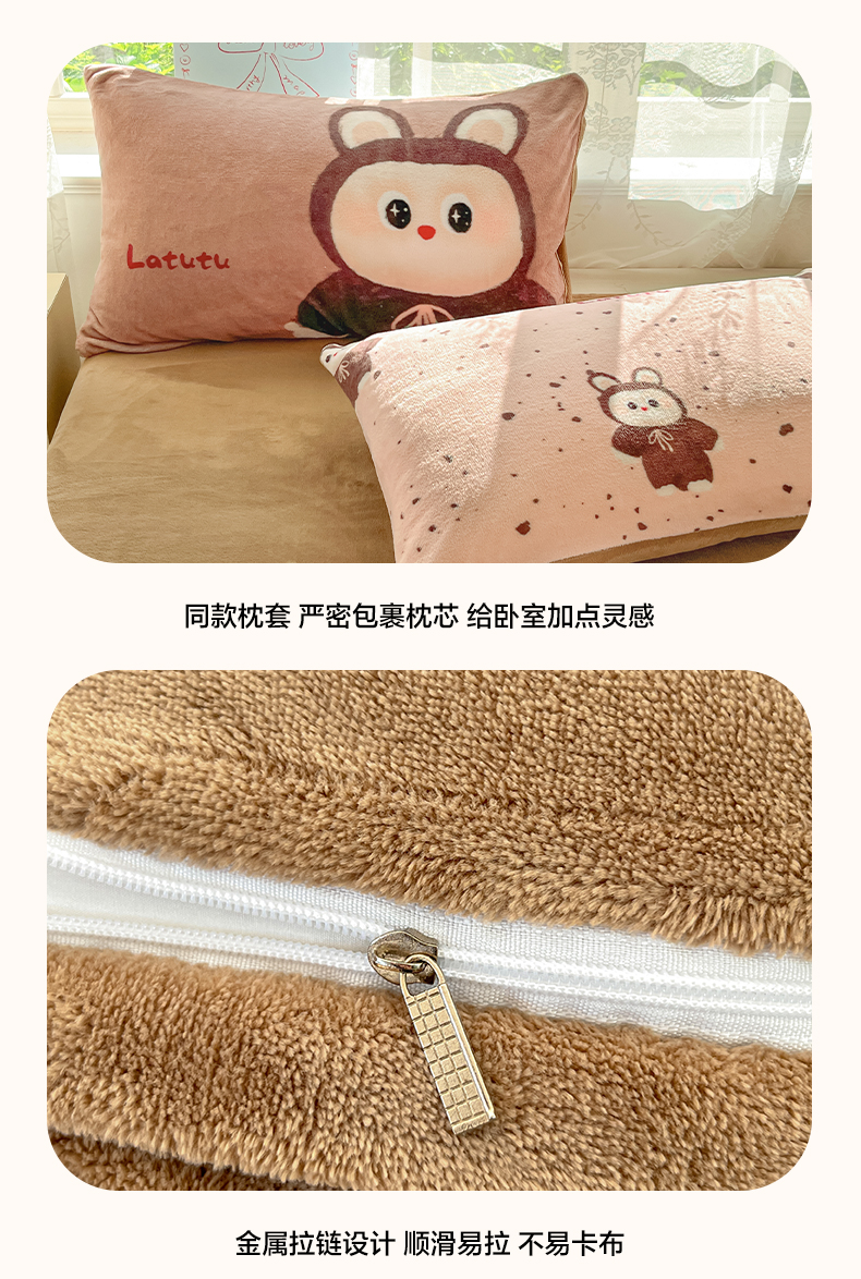 商品名称:如一 2025新款高克重卡通印花牛奶绒四件套第三批 拉兔粉