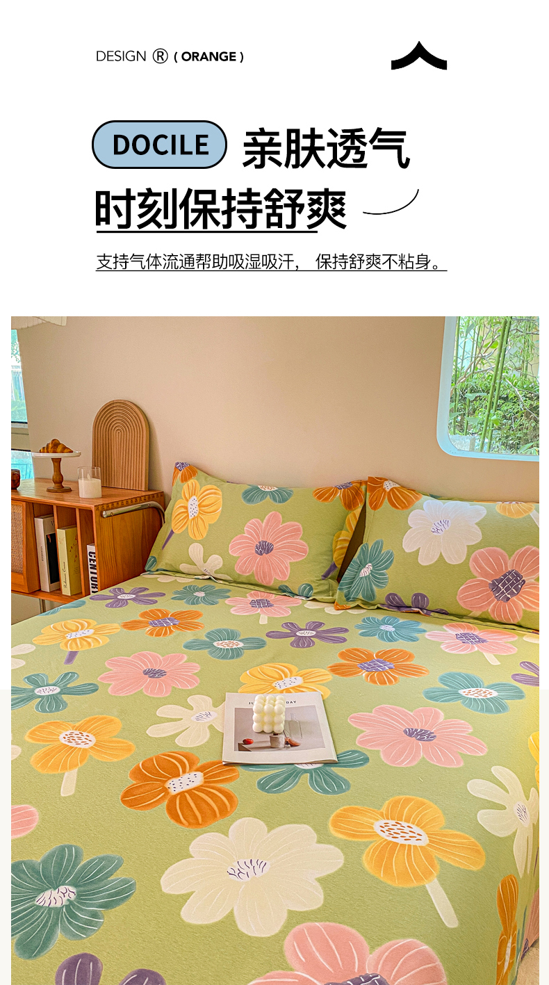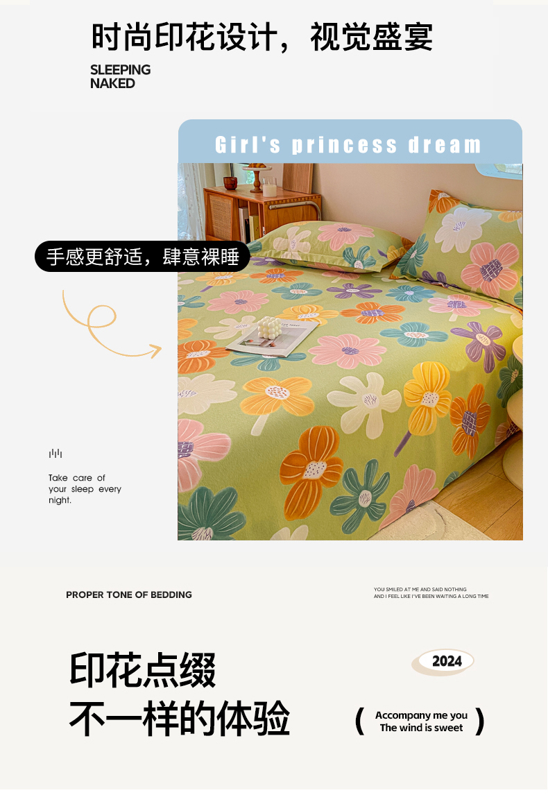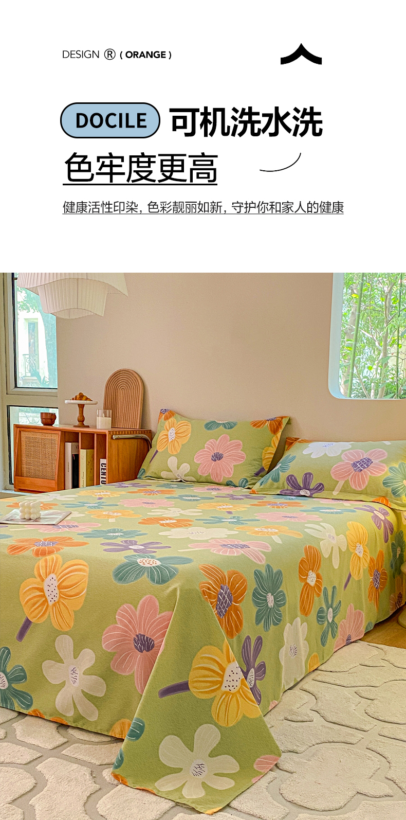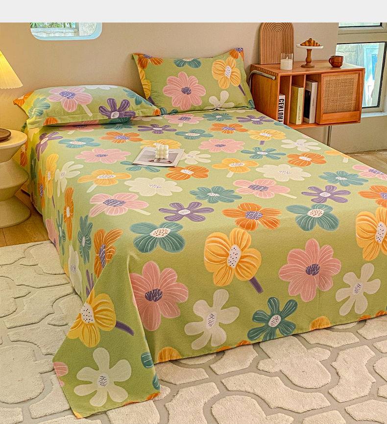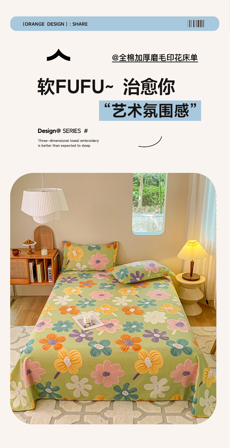 小叮当家纺仓储工厂店 2025新款(买家秀 不断货)A类全棉纯棉磨毛单床单 床单单件 花骨朵-绿