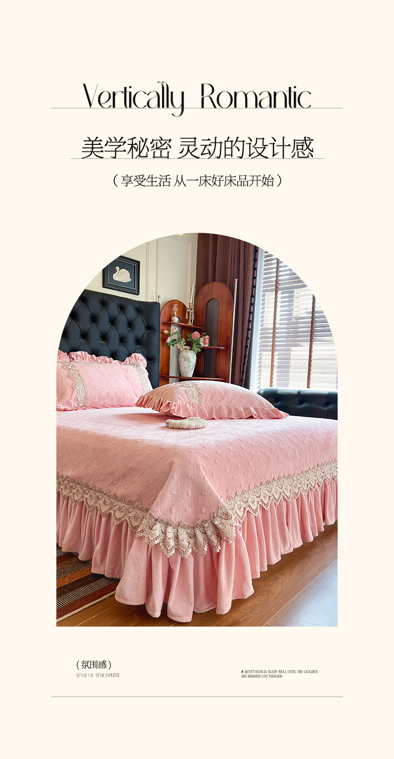 • 91家纺网 家纺一手货源 找家纺 (总)瑞宝 2025新款雕花牛奶绒花边夹棉床盖四件套-莫妮卡,奶昔白,抹茶绿,奶茶咖,少女粉,雾蓝