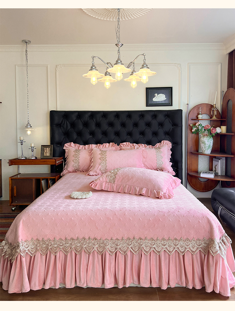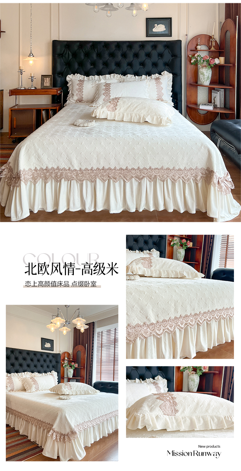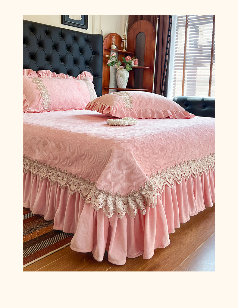 (总)瑞宝 2025新款雕花牛奶绒花边夹棉床盖四件套-莫妮卡,奶昔白,抹茶绿,奶茶咖,少女粉,雾蓝