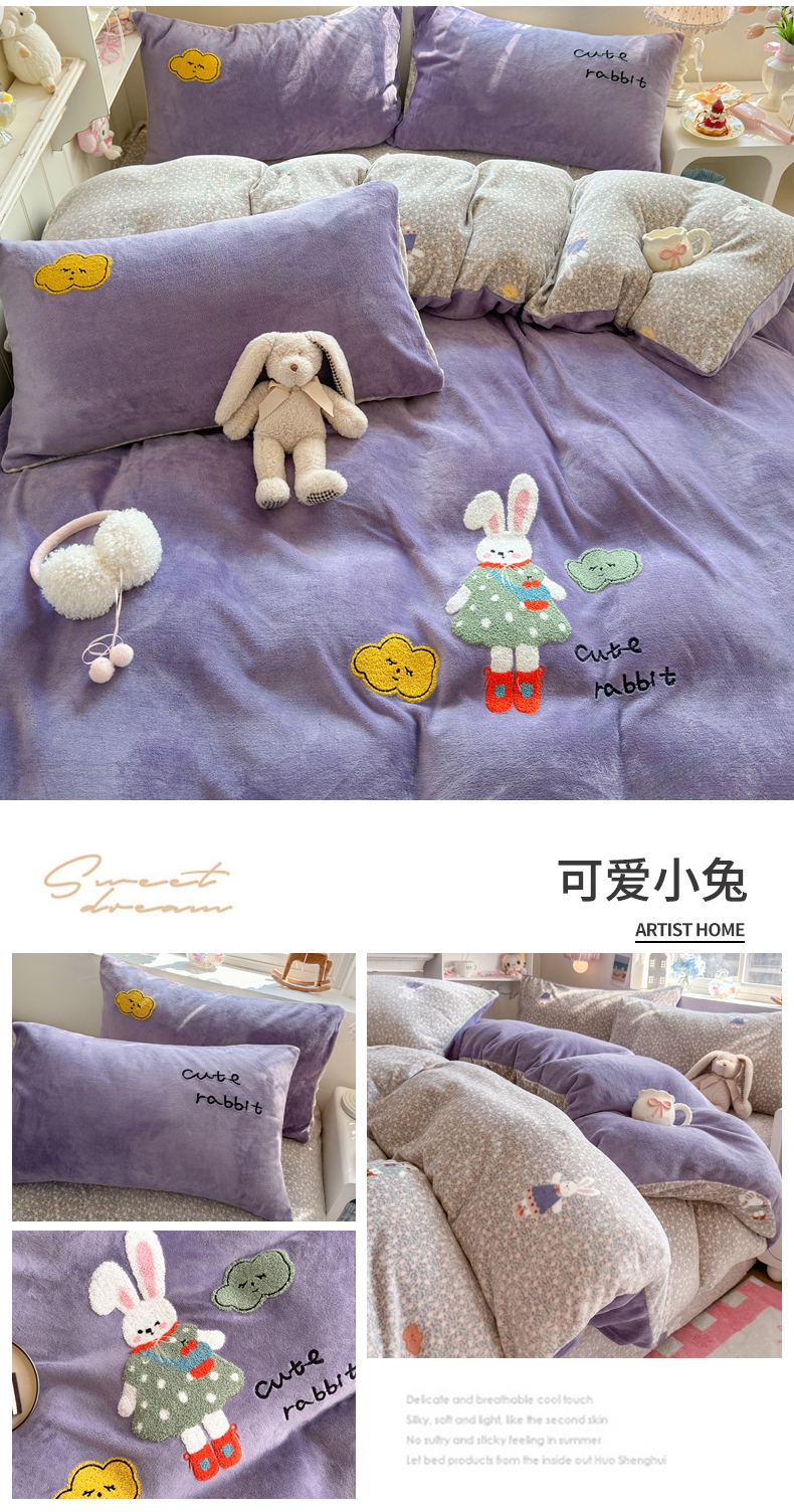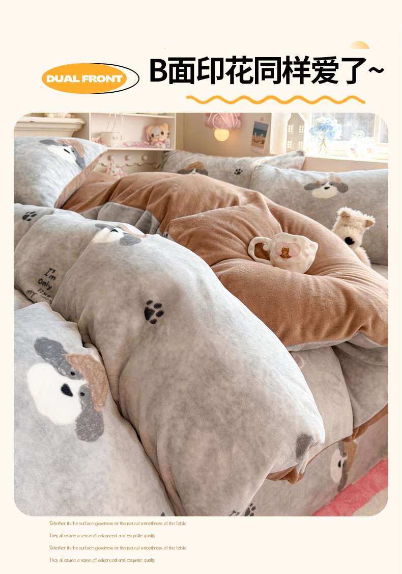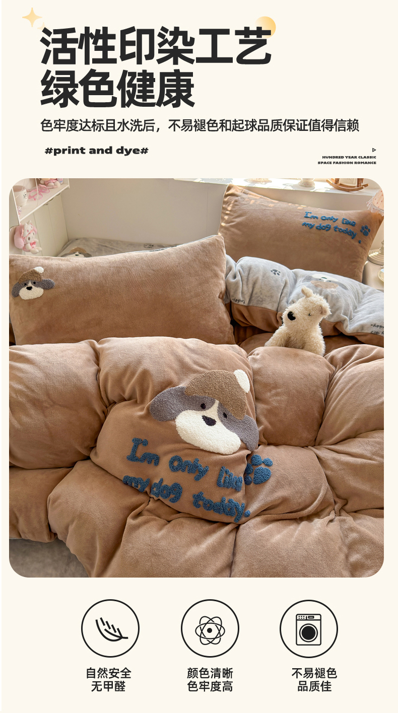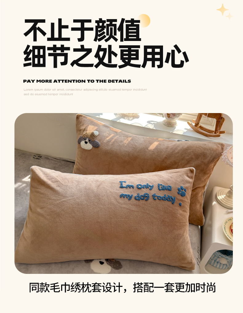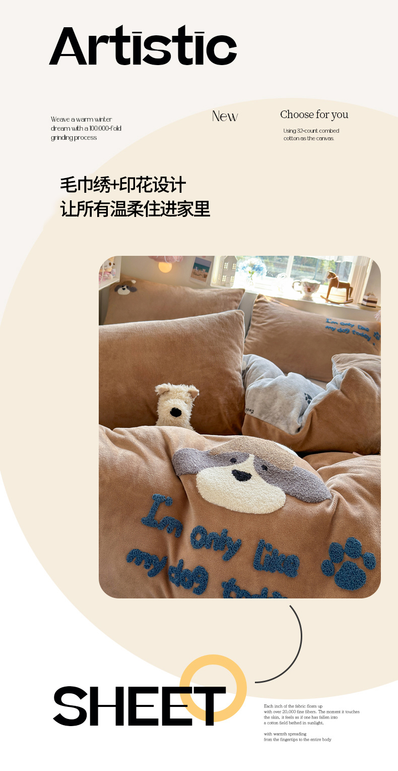 商品名称:Sweet dreams甜梦 2025新款全消光牛奶绒毛巾绣印花四件套 帽子小狗