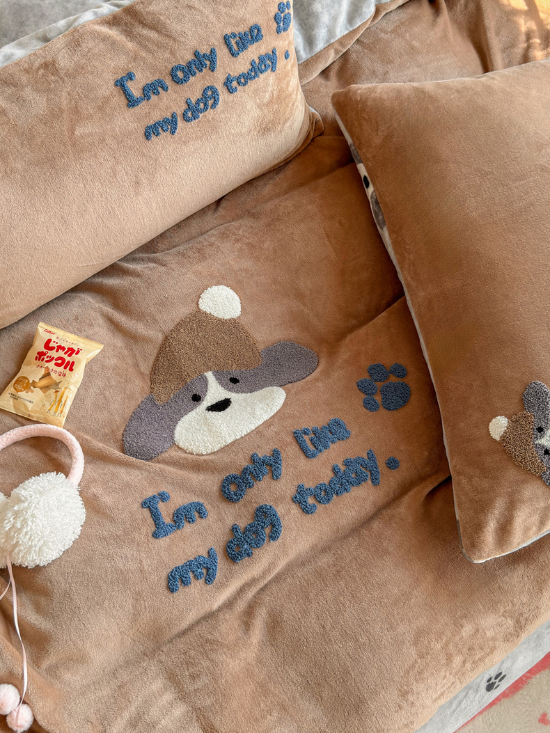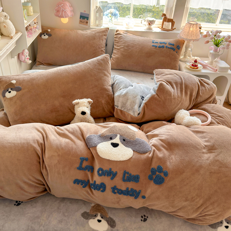 Sweet dreams甜梦 2025新款全消光牛奶绒毛巾绣印花四件套 帽子小狗