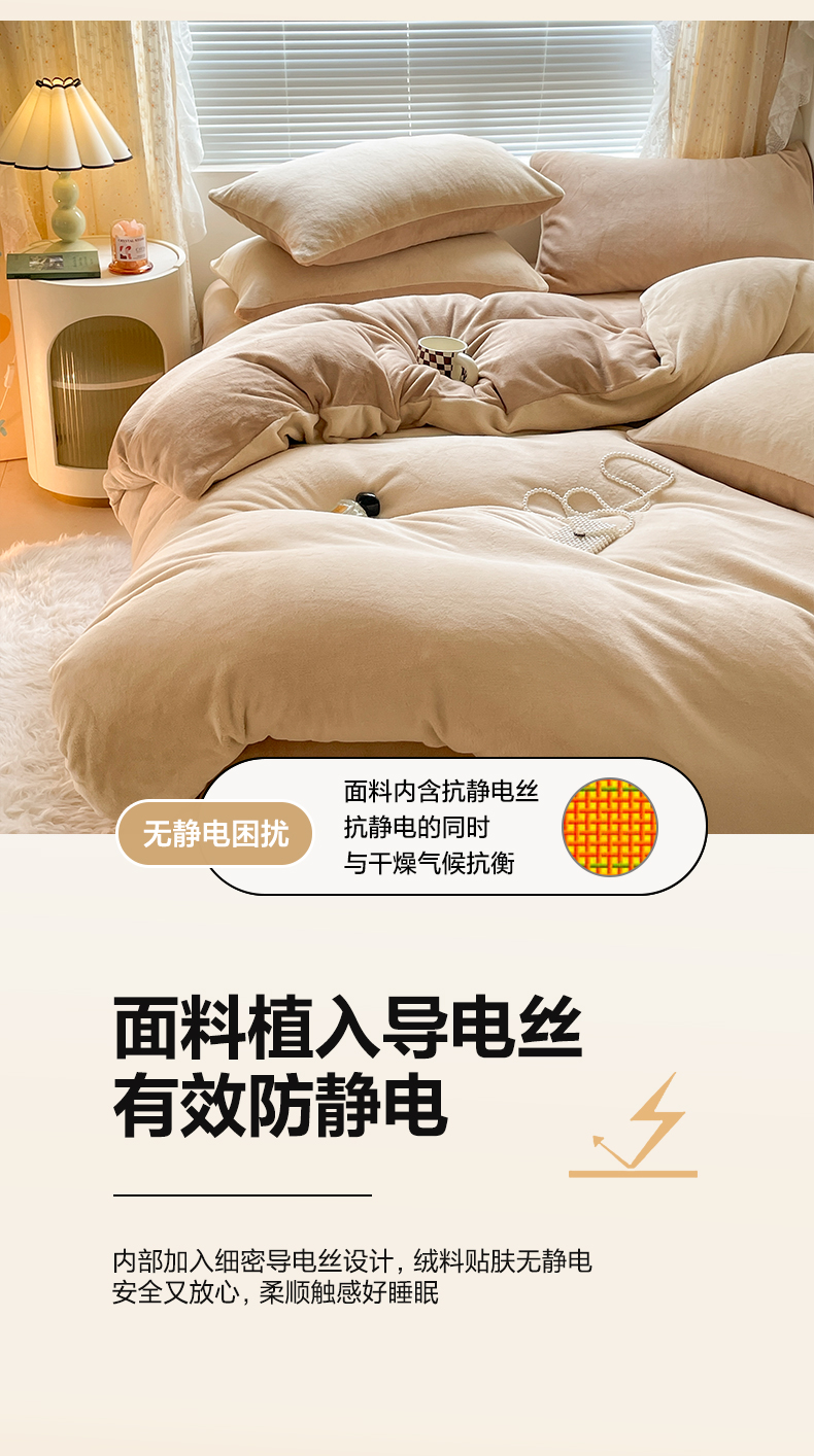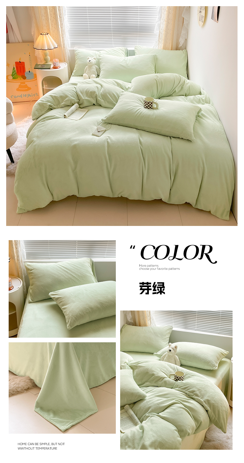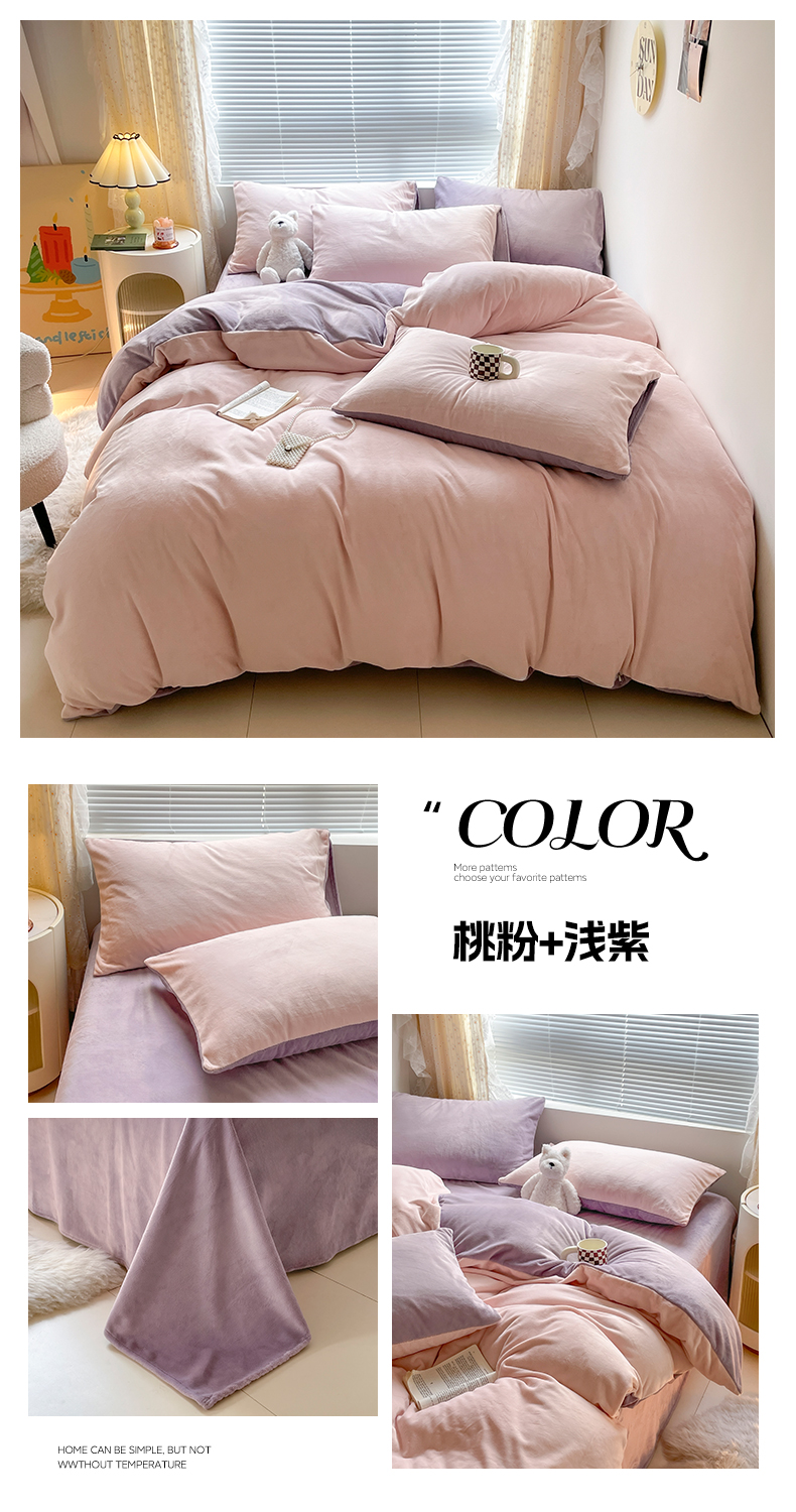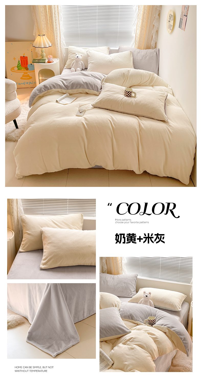 商品名称:小叮当家纺仓储工厂店 2025新款纯色双拼牛奶绒四件套190克 卡尔-米杏+茶咖