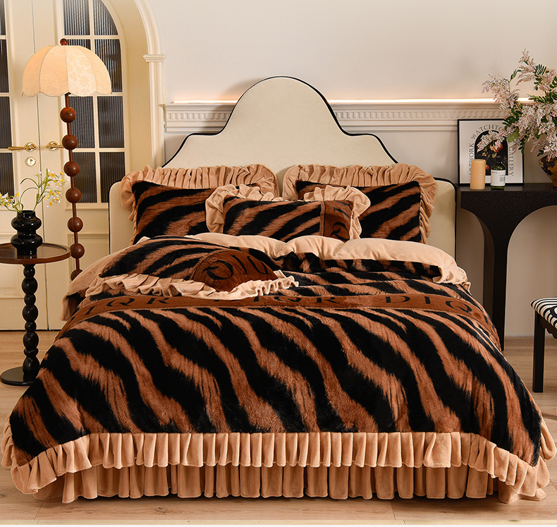 (总)茉保家纺 2025新款9.5斤秋冬保暖牛奶绒印花兔毛绒四件套,豹纹咖,晕雅墨,星雅墨,雅轻蝶,轻蝴蝶,咖雅墨,星云咖