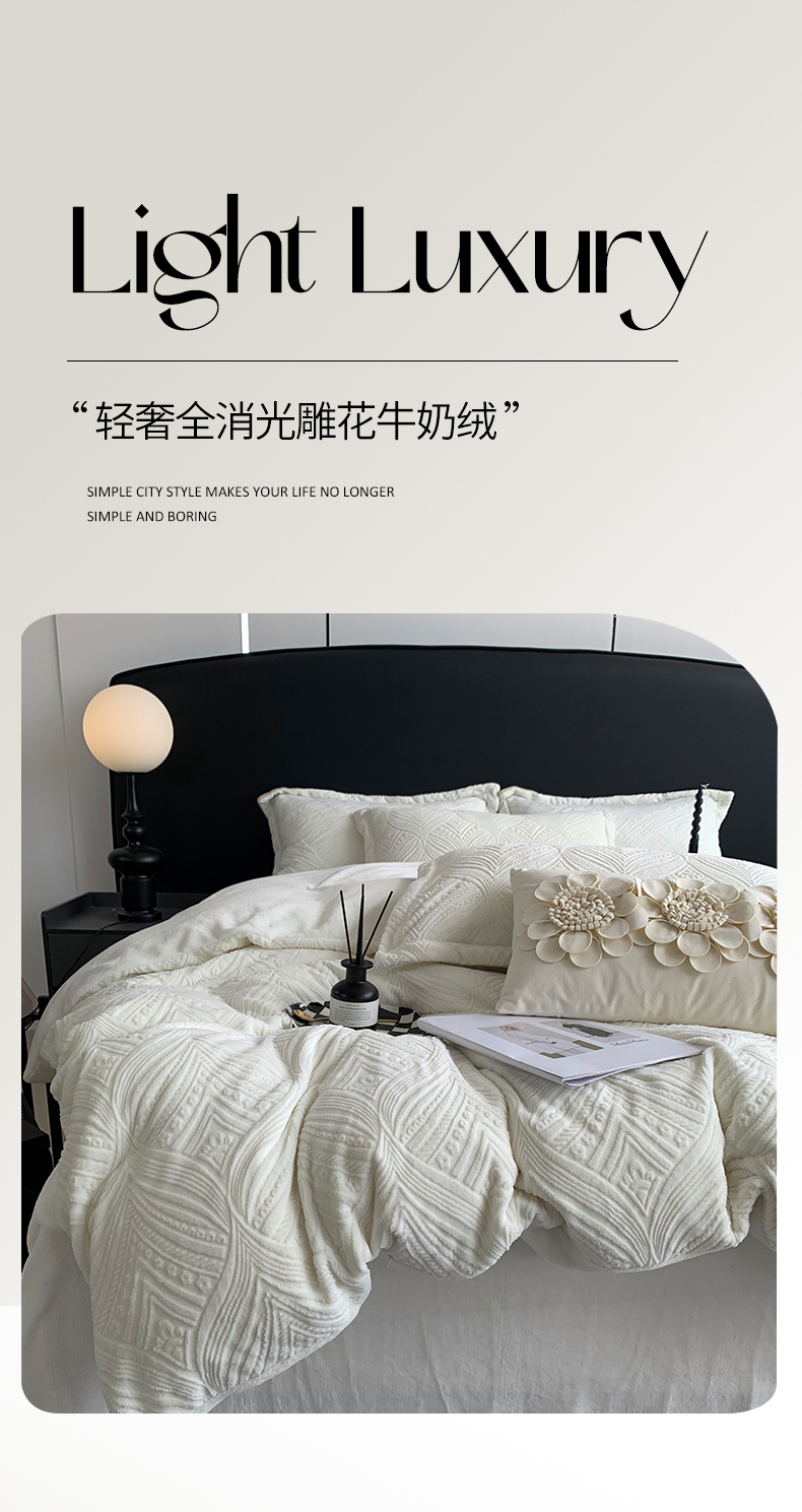 莱豫家纺 2025新款全消光雕花牛奶绒四件套-流年 流年耀白