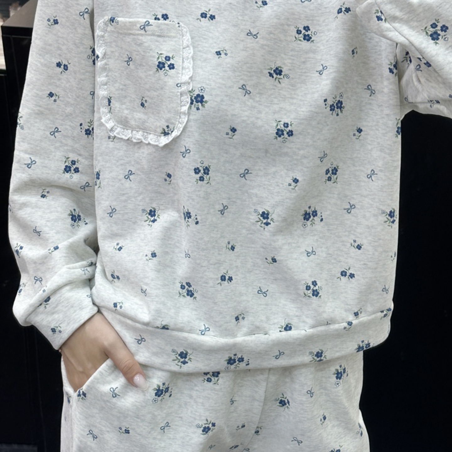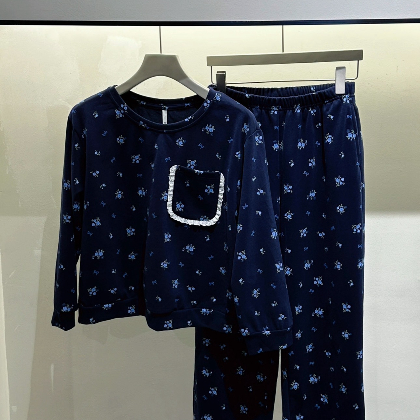 妍景家居生活馆 2025新款卫衣碎花圆领套装 藏蓝