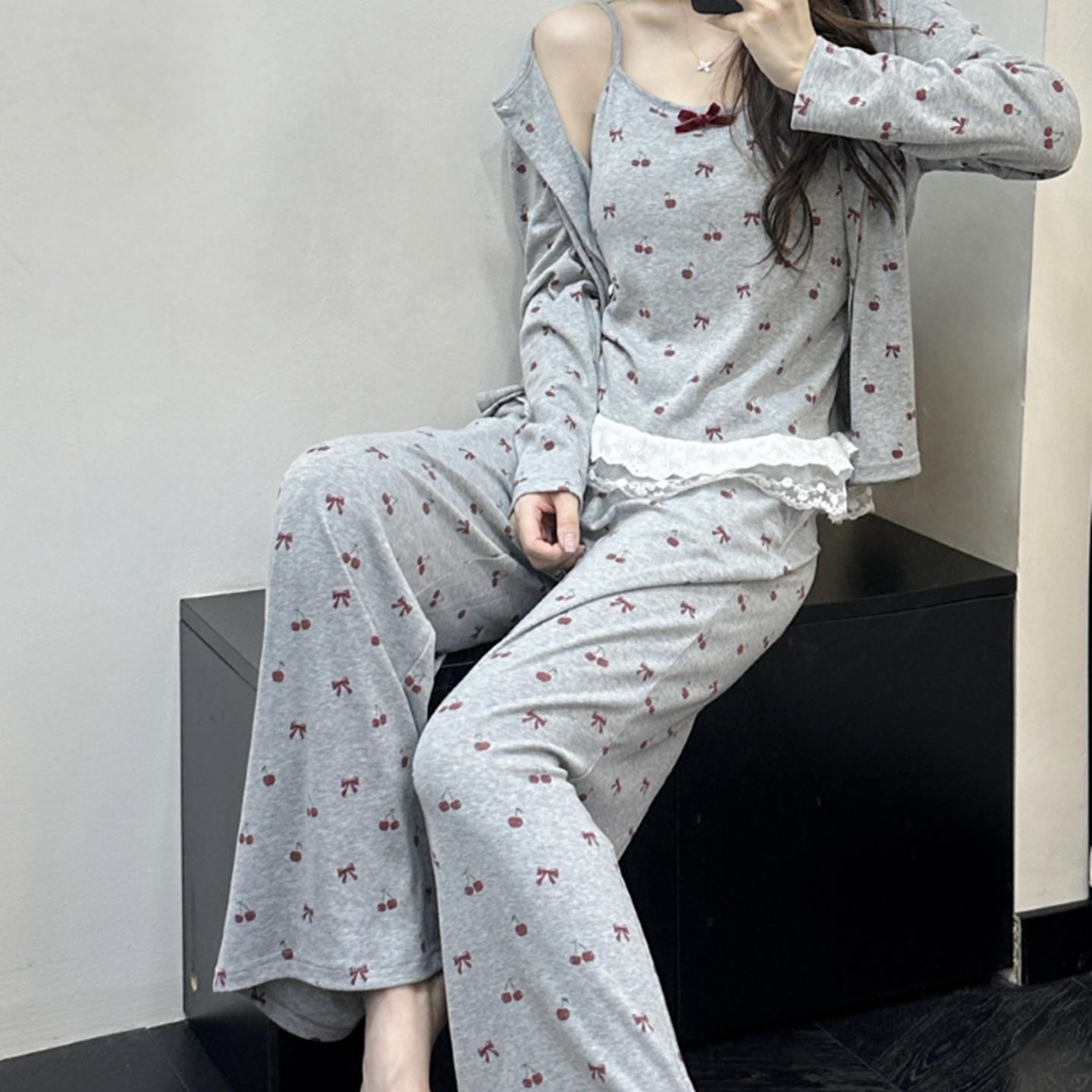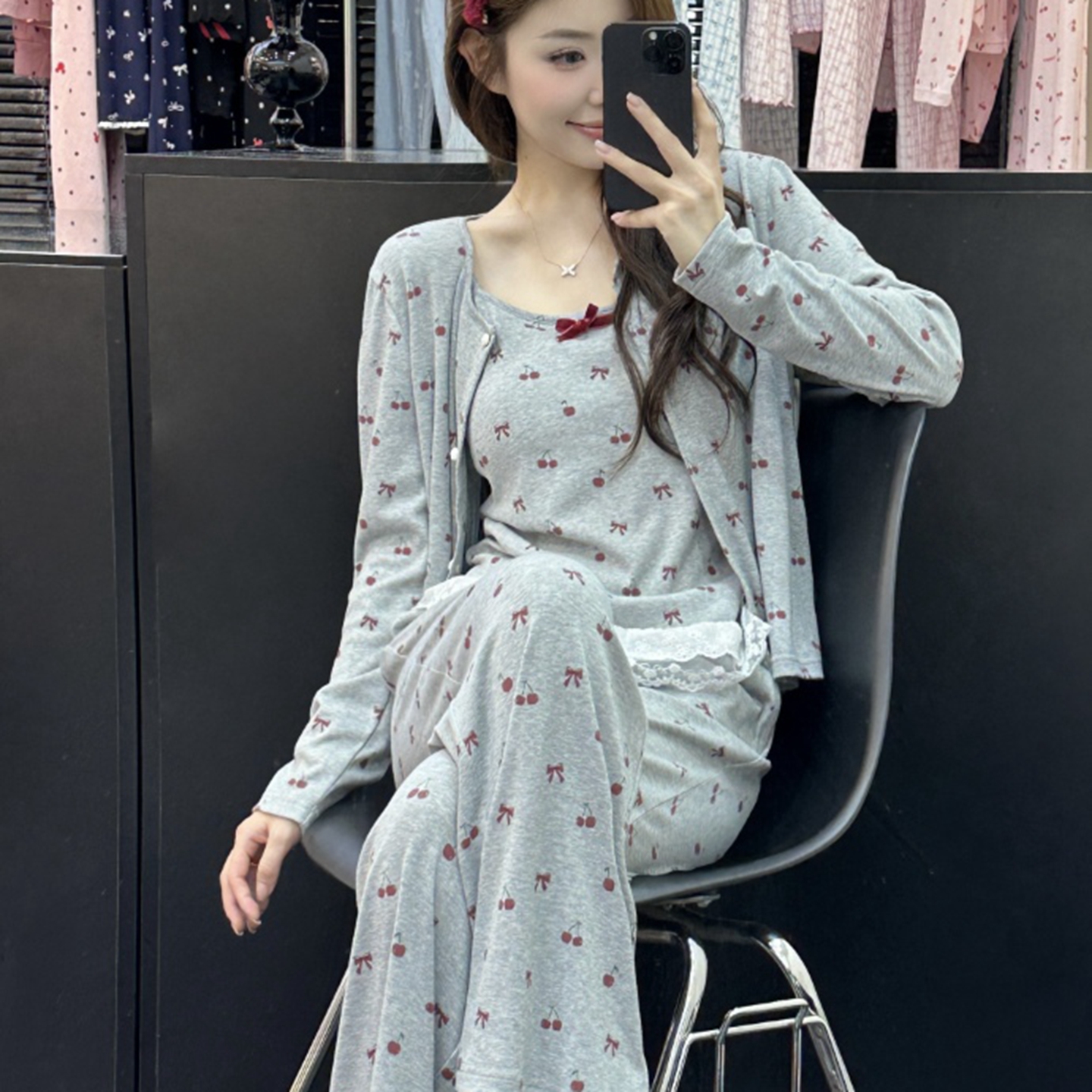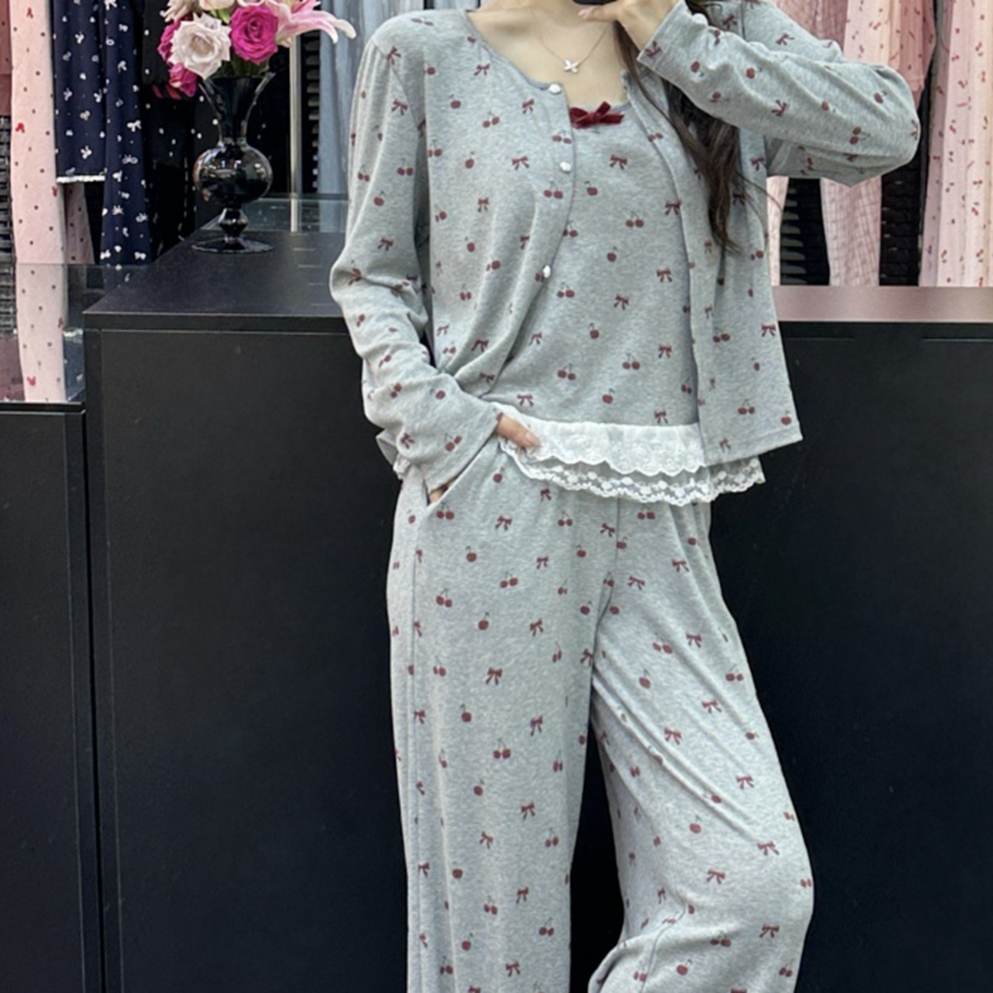 当前位置: 91家纺网 > 商品网购 > 居家日用 > 睡衣/家居服套装 > (总)妍景家居生活馆 2025新款樱桃蝴蝶结三件套