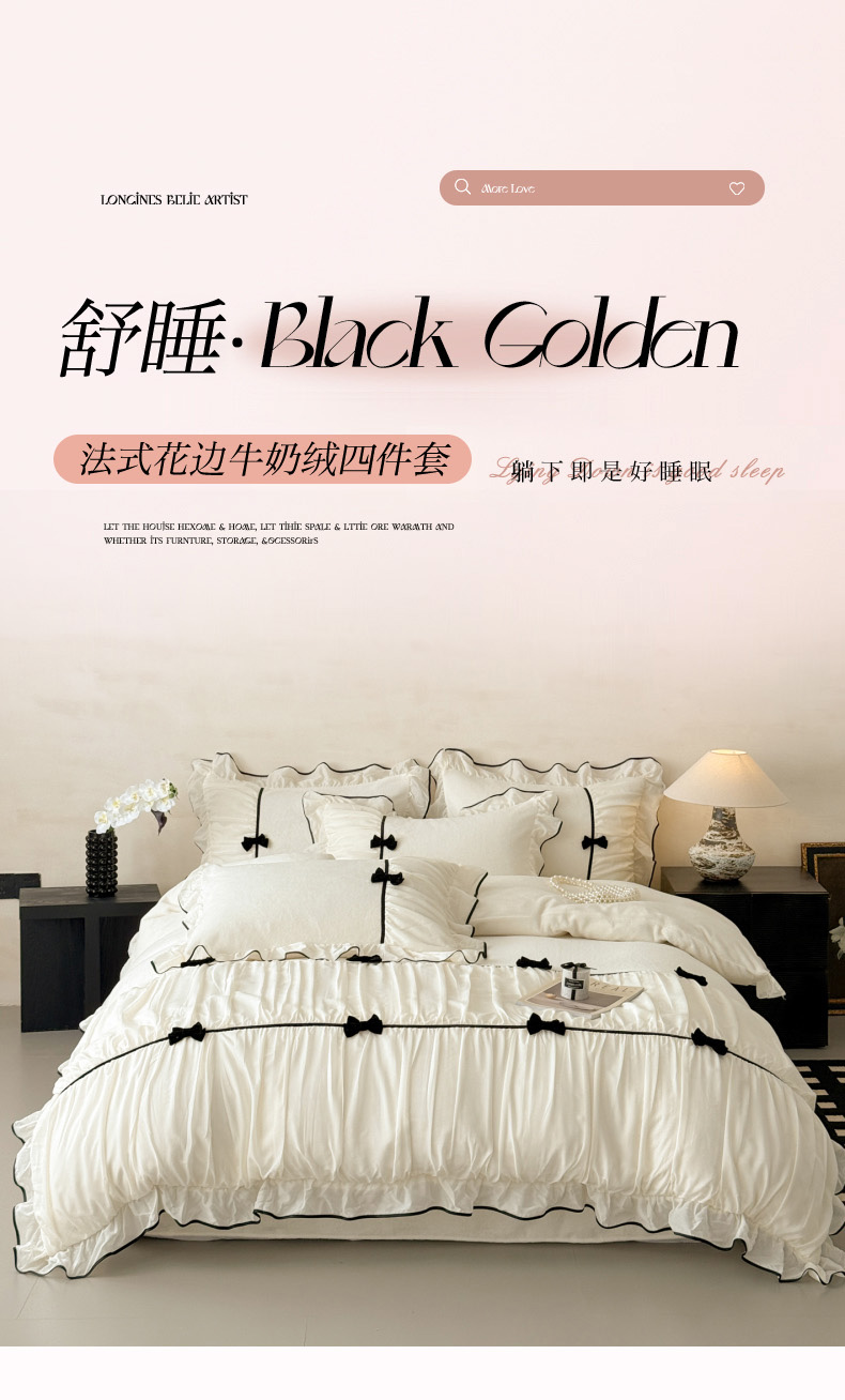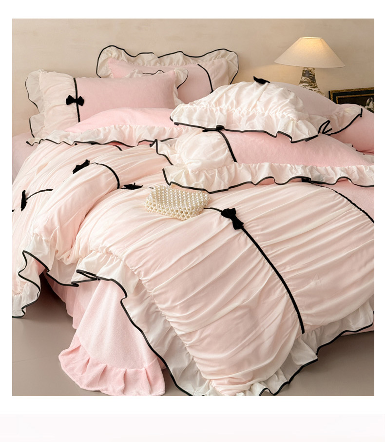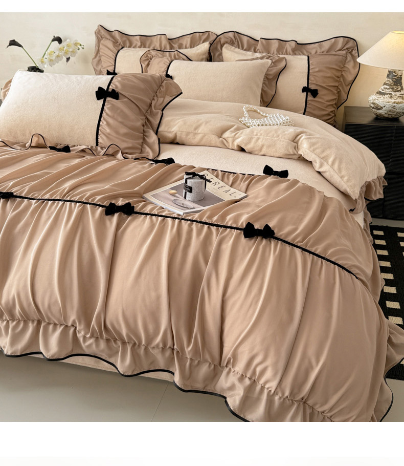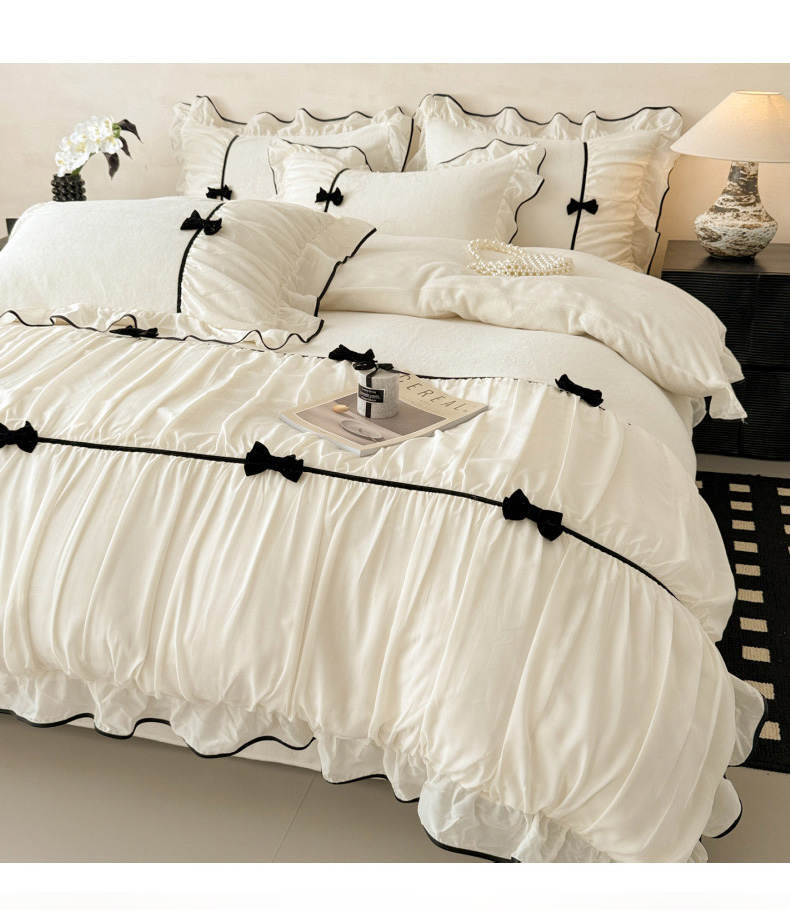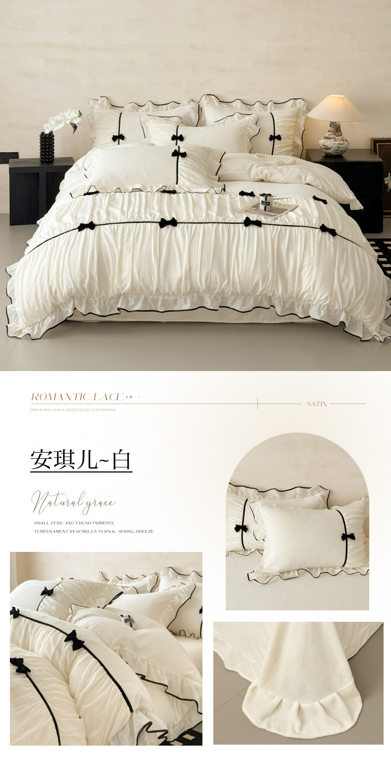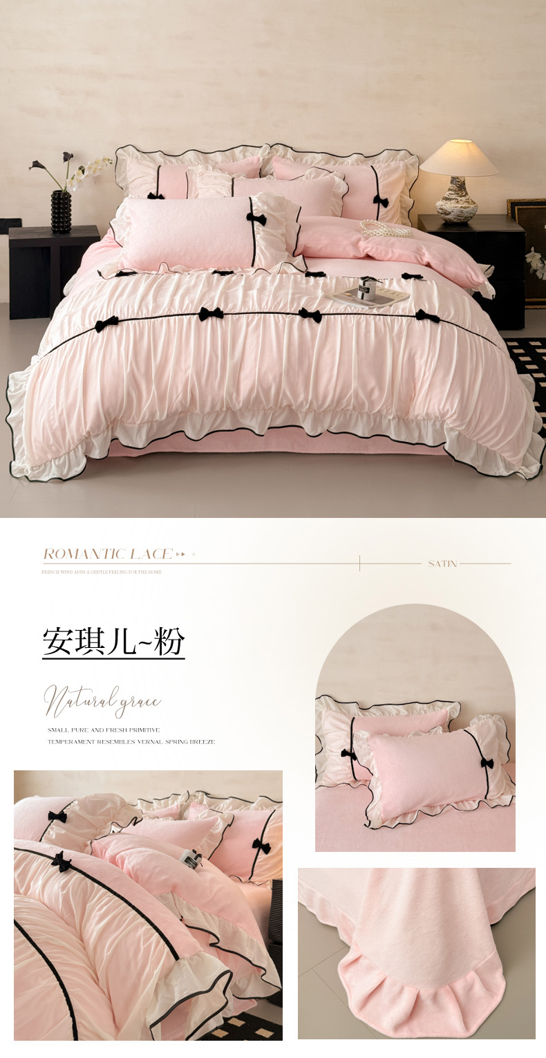 (总)米可 2025新款牛奶绒蕾丝花边四件套韩版法式公主风四件套~ 安琪儿系列