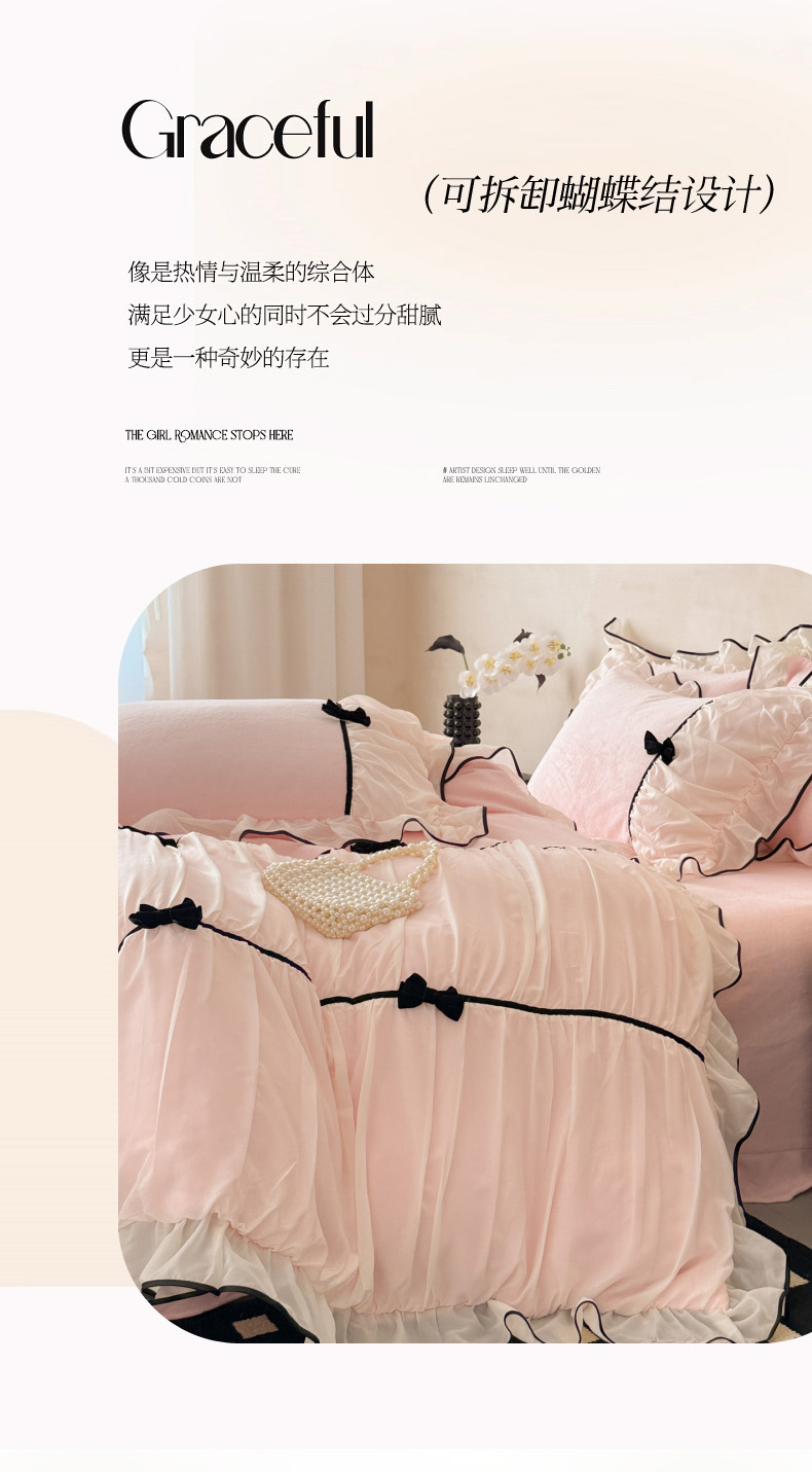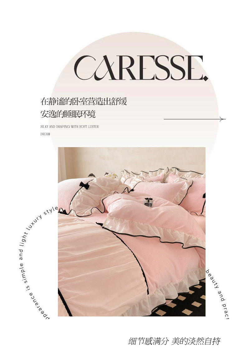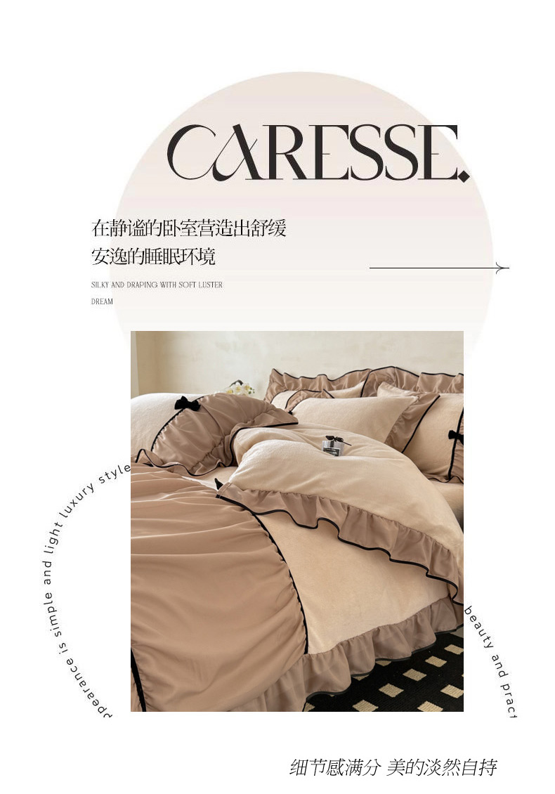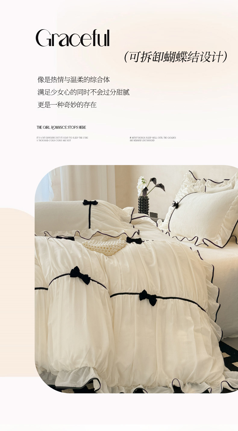 商品名称:(总)米可 2025新款牛奶绒蕾丝花边四件套韩版法式公主风四件套~ 安琪儿系列