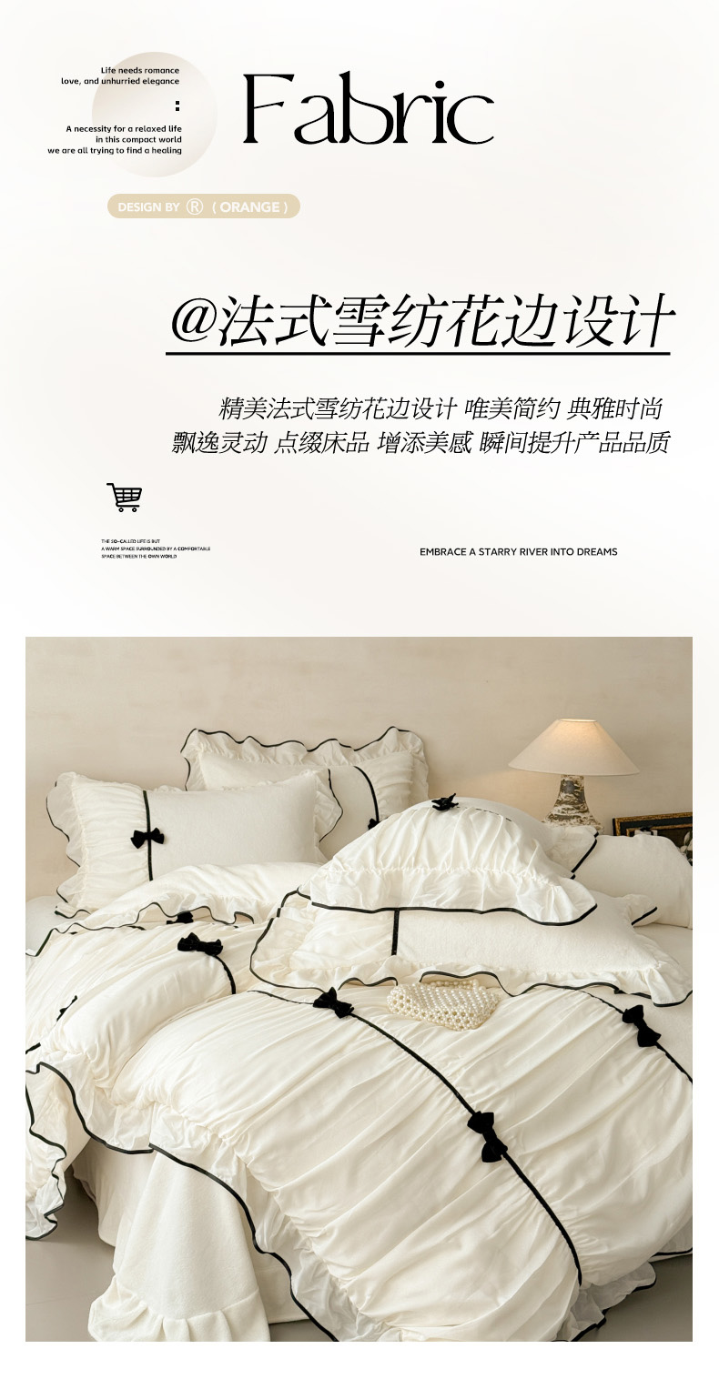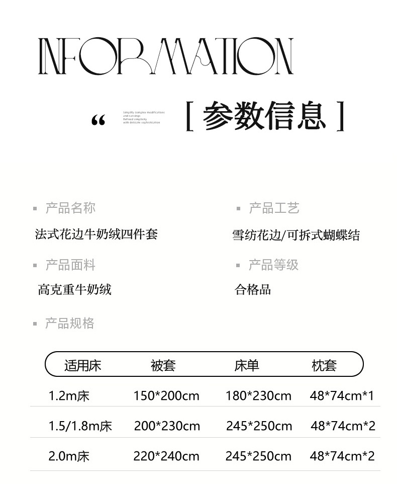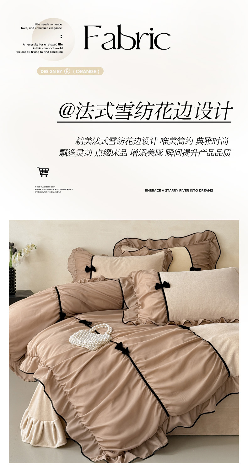 商品名称:(总)米可 2025新款牛奶绒蕾丝花边四件套韩版法式公主风四件套~ 安琪儿系列