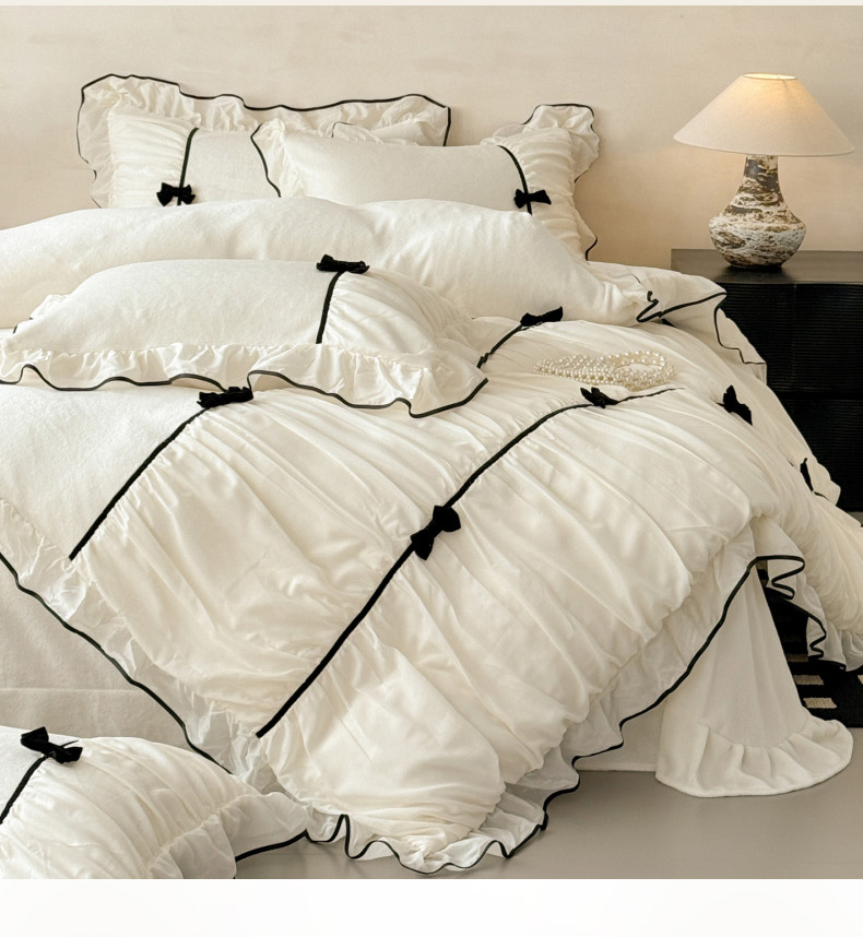 (总)米可 2025新款水洗棉蕾丝花边绣花工艺款四件套,玫瑰仙子-浅粉,玫瑰仙子-白粉,玫瑰仙子-白黑,玫瑰仙子-浅绿