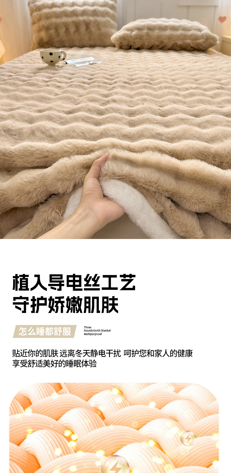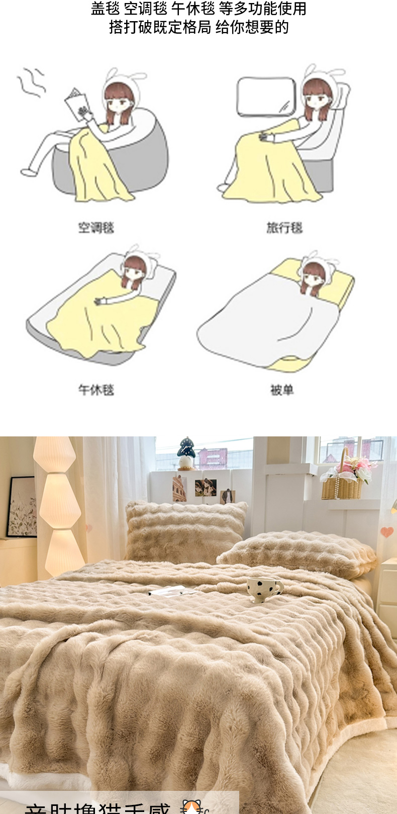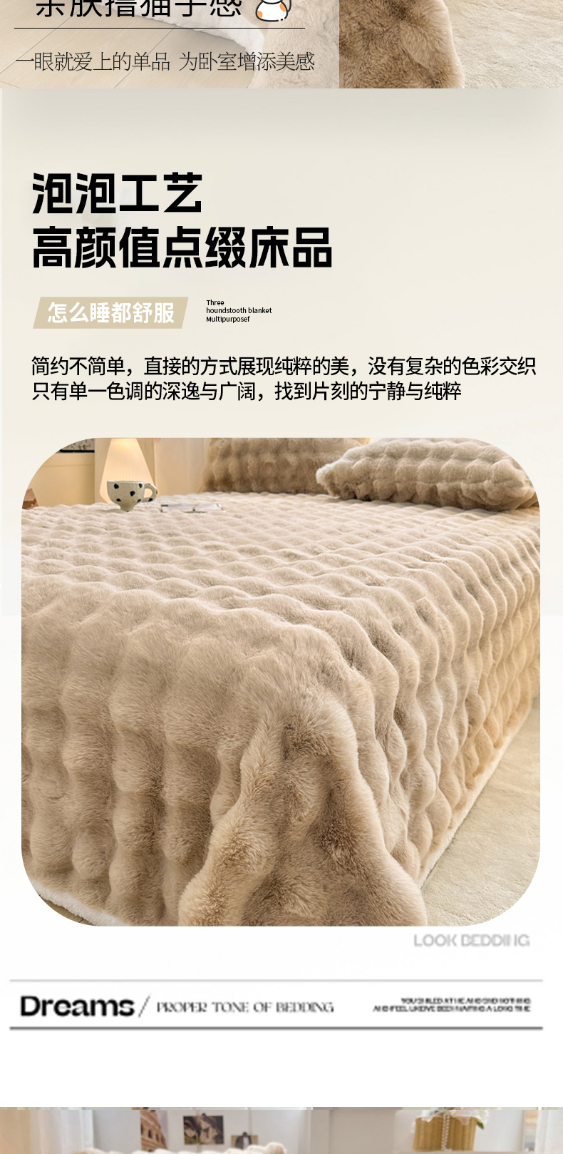 (总)麒东家纺 2025新款泡泡绒兔毛绒床单,流彩粉,深灰,咖色,米白,天蓝,流彩蓝,流彩绿,流彩紫