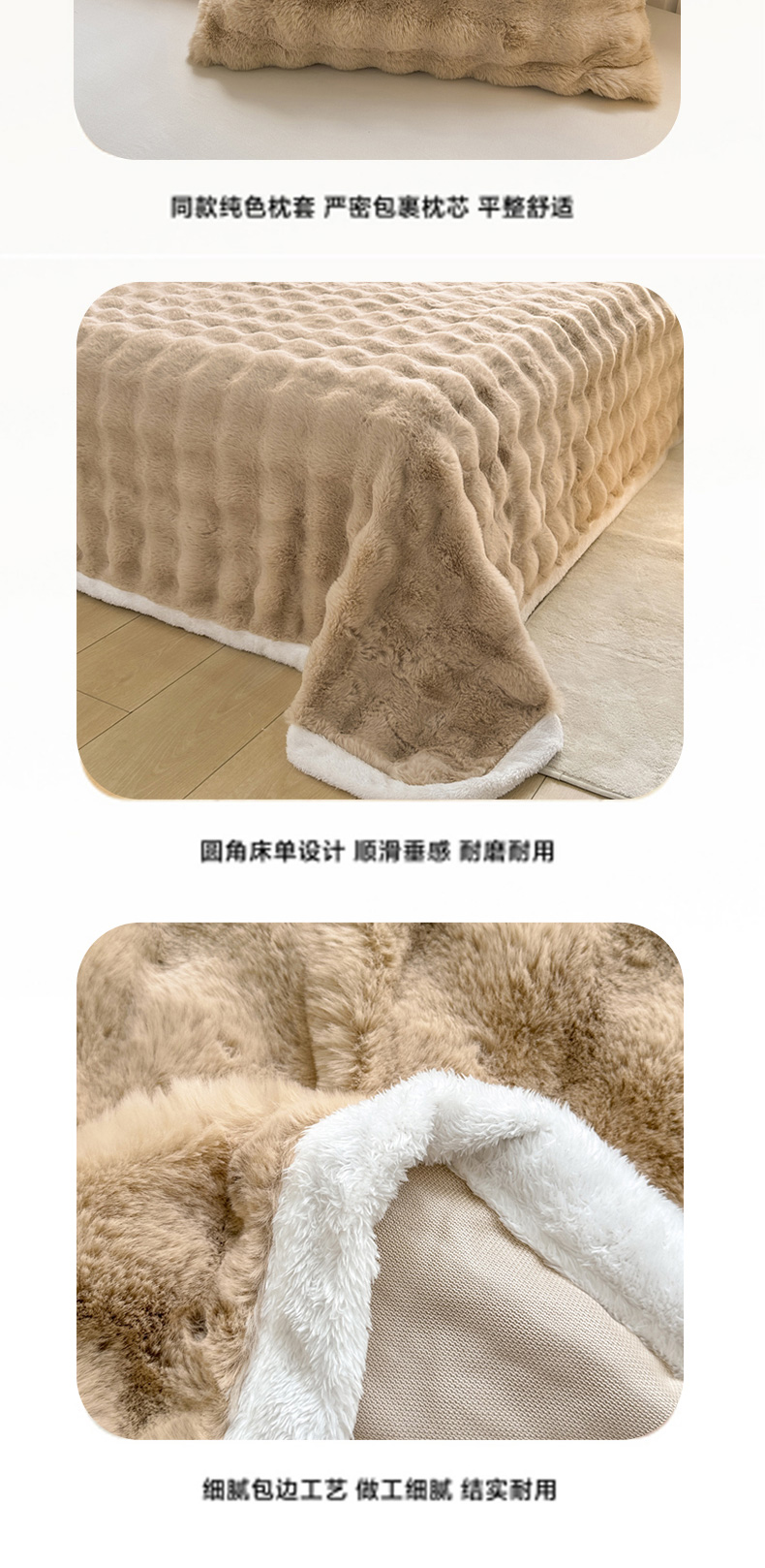 • 91家纺网 家纺一手货源 找家纺 麒东家纺 2025新款加厚纯色兔毛绒泡泡单床单 咖色