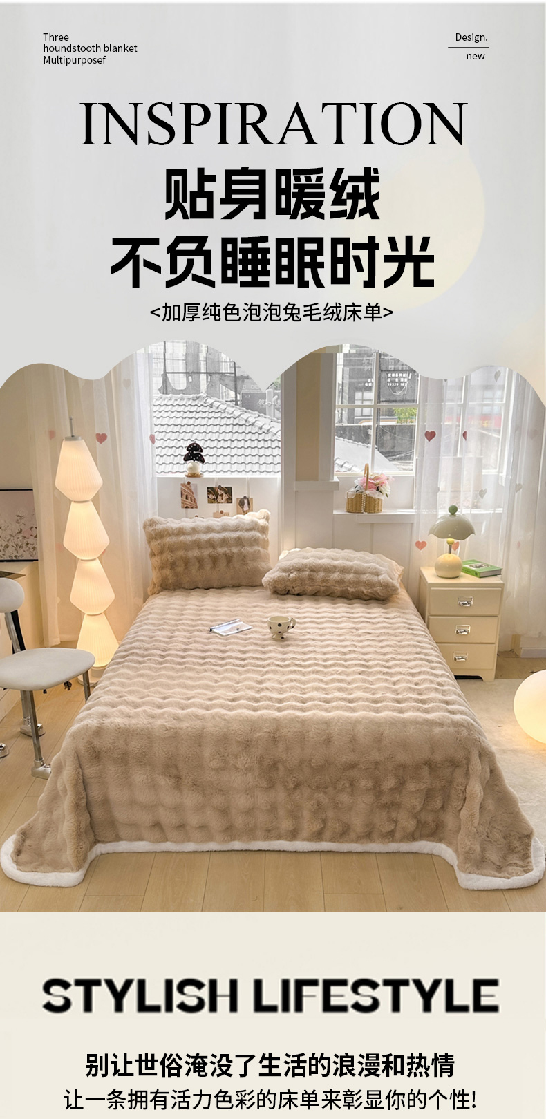 (总)麒东家纺 2025新款加厚纯色兔毛绒泡泡单床单,米白,天蓝,粉色,咖色,绿色,浅灰,深灰