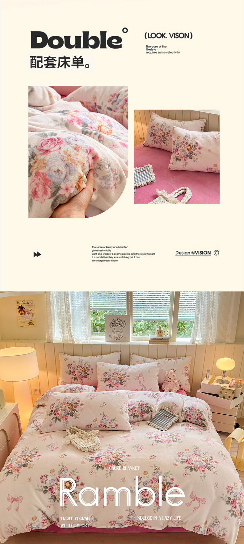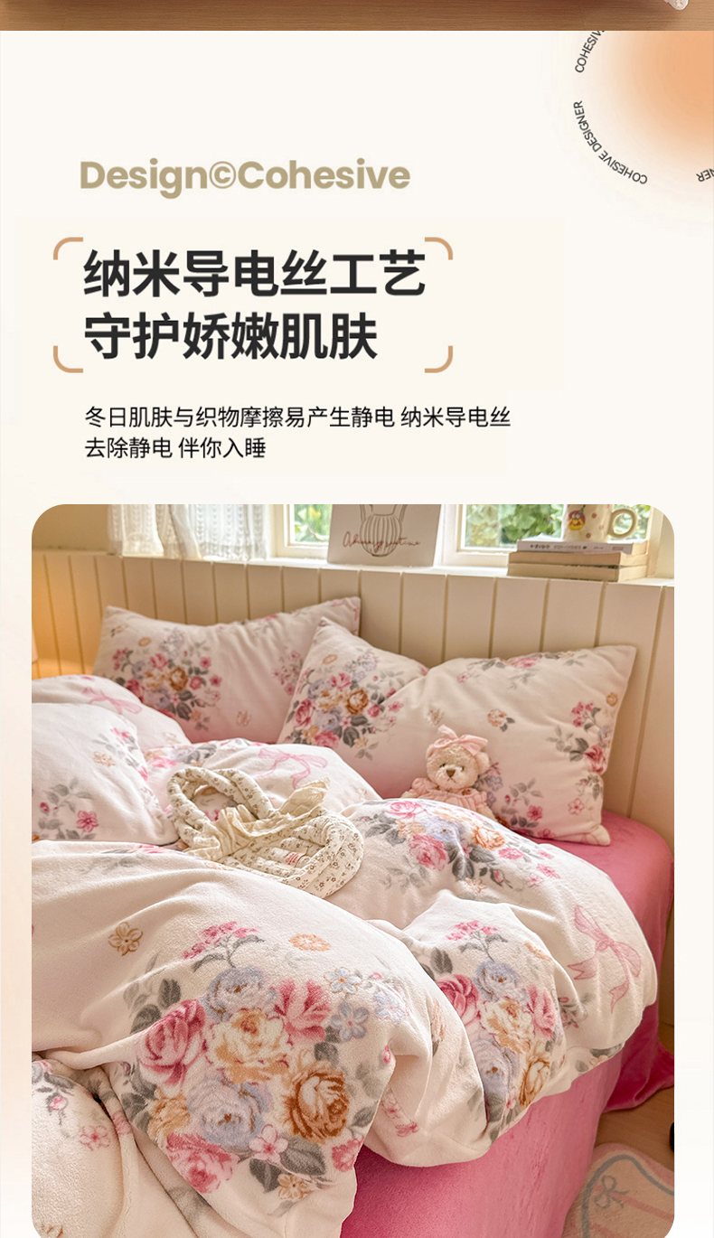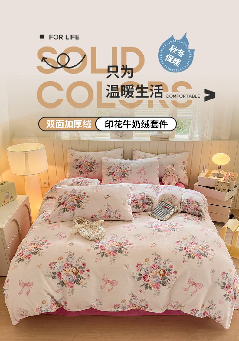 当前位置: 91家纺网 > 商品网购 > 床品套件 > 四件套 > 牛奶绒四件套 > 丽美人家纺 2025新款小版印花牛奶绒四件套 春风沐歌