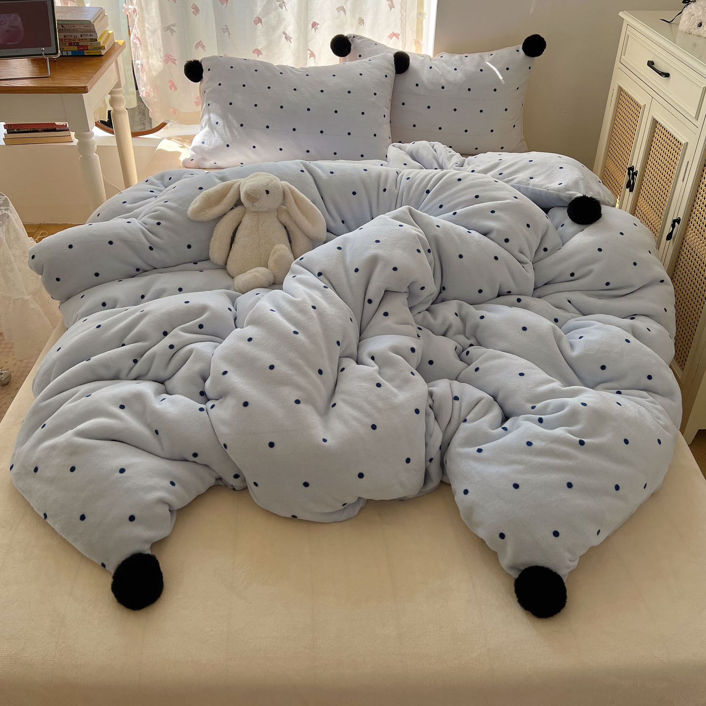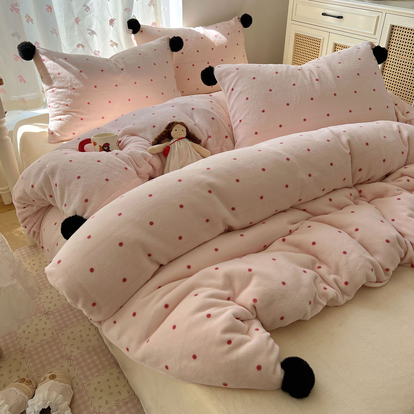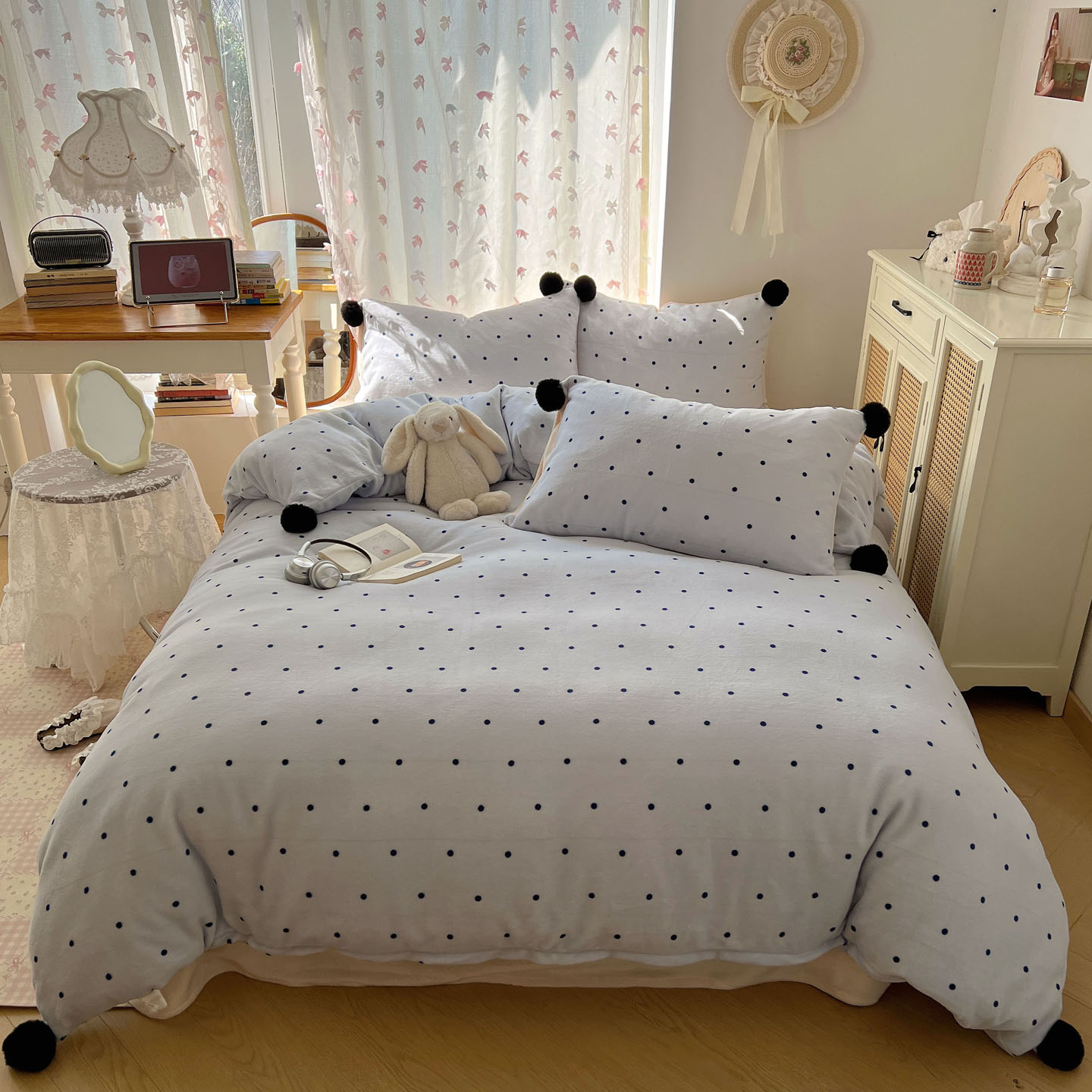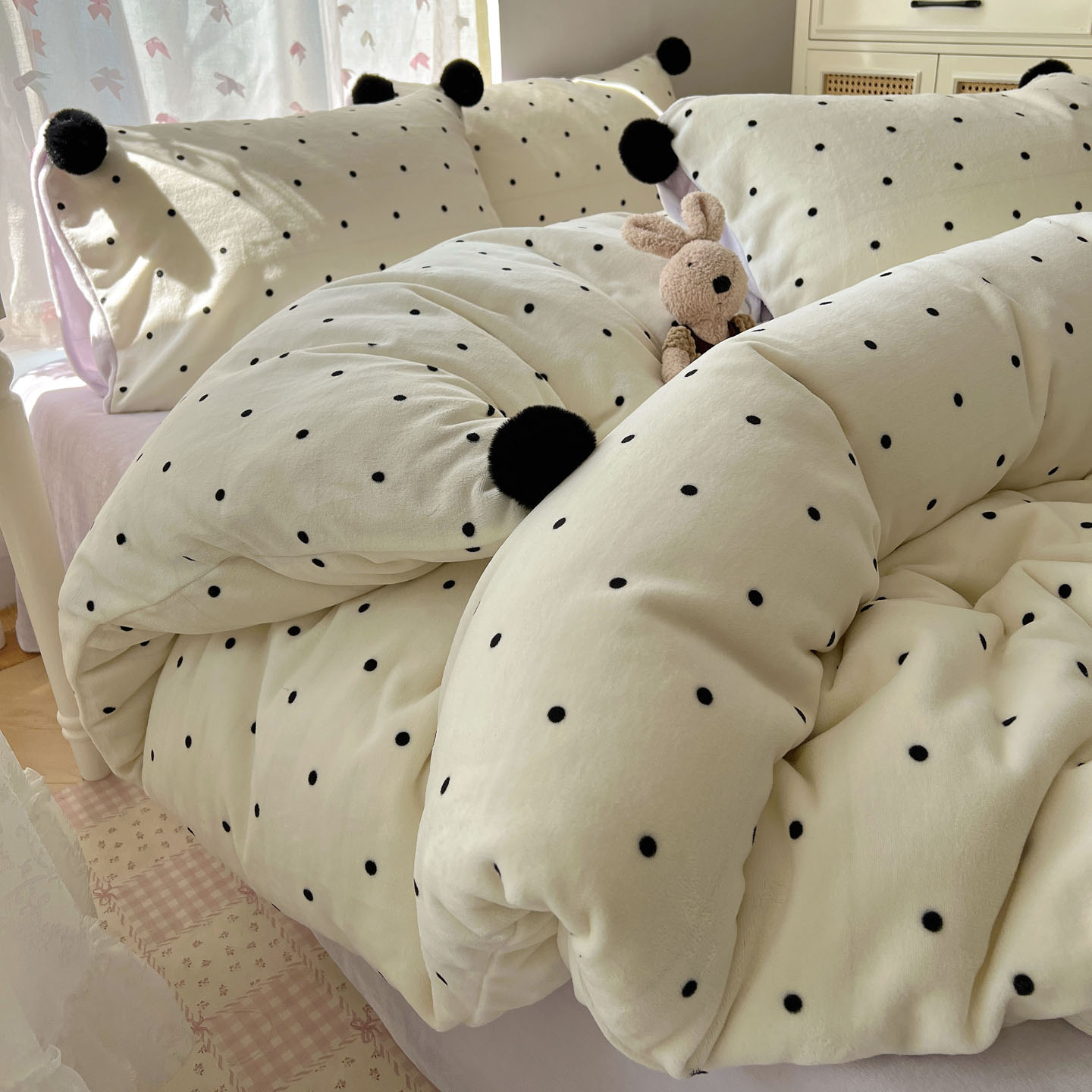 (总)顾里家纺 2025新款chic波点牛奶绒毛球套件