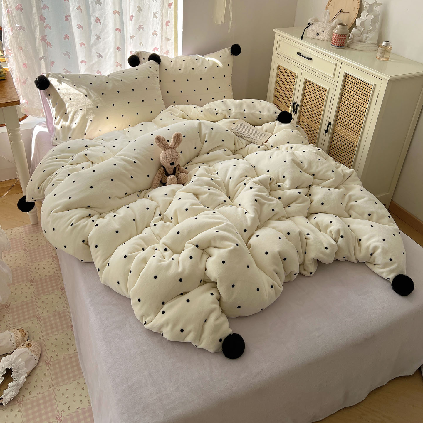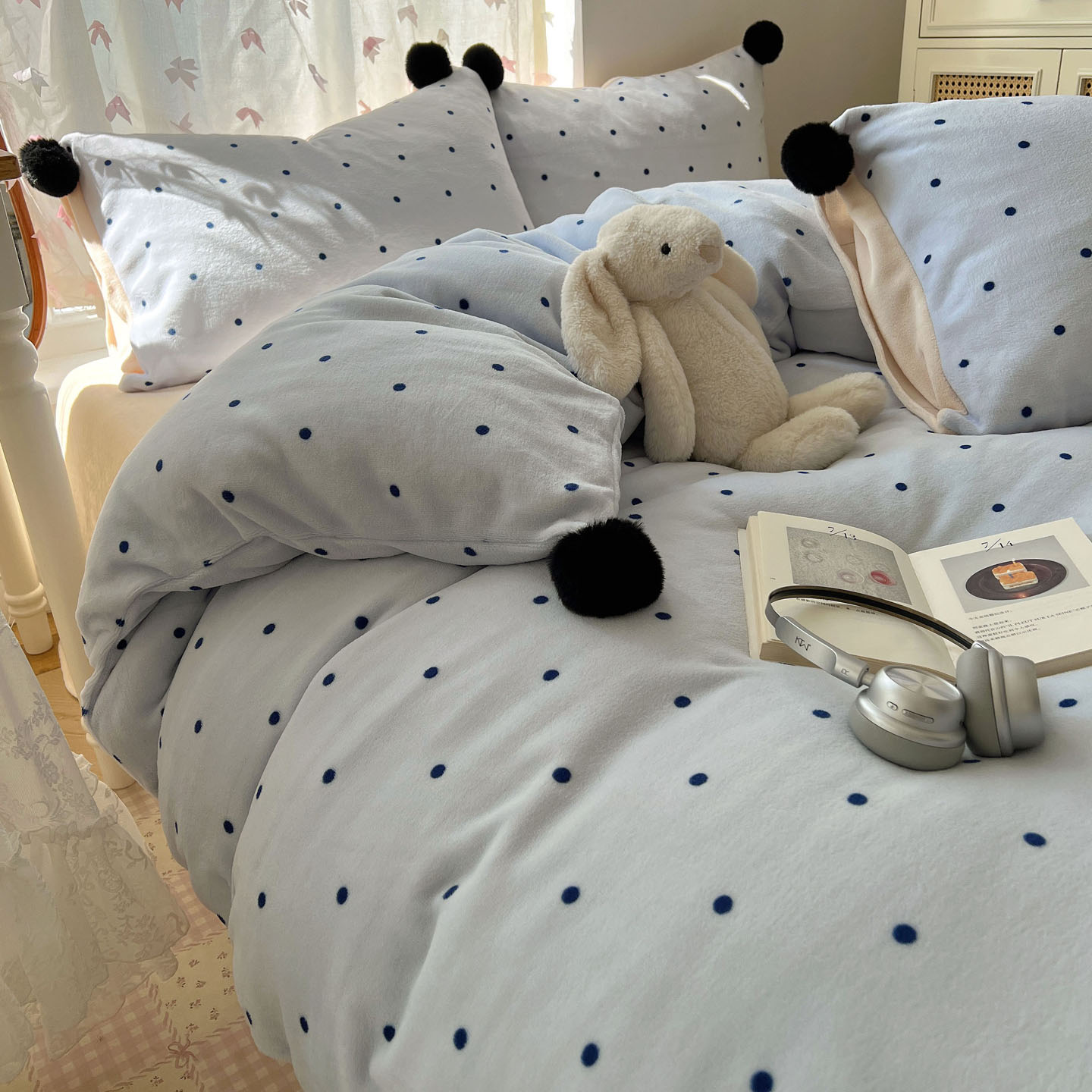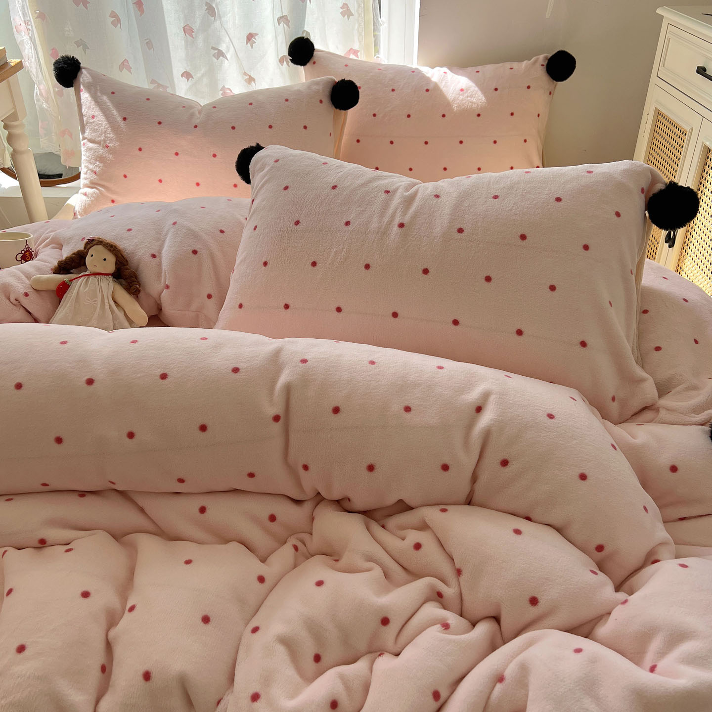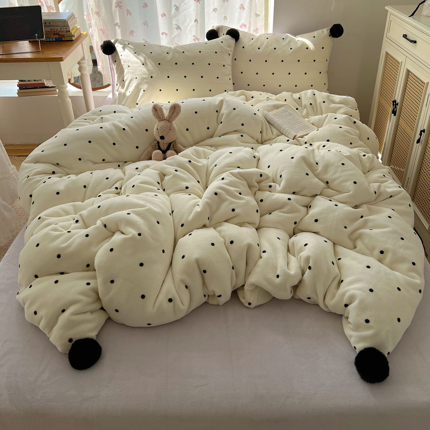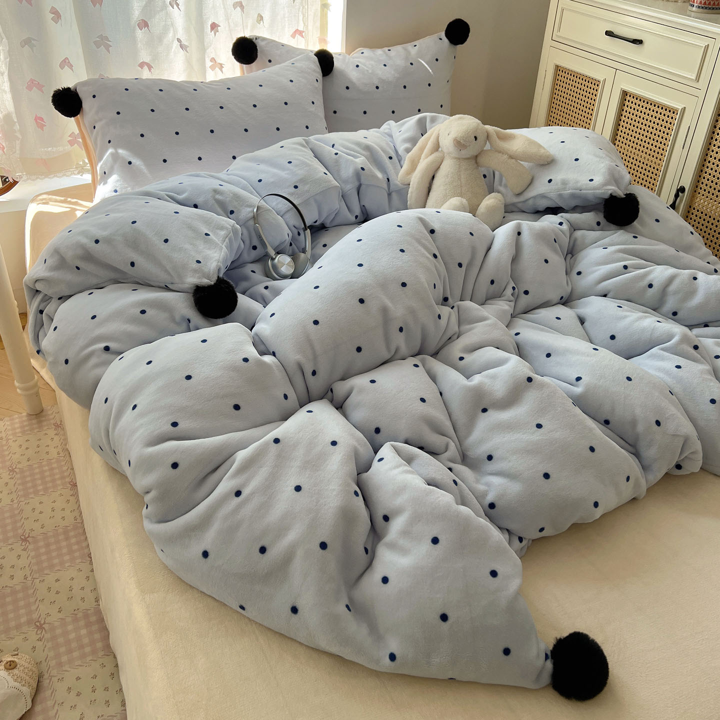 (总)顾里家纺 2025新款chic波点牛奶绒毛球套件