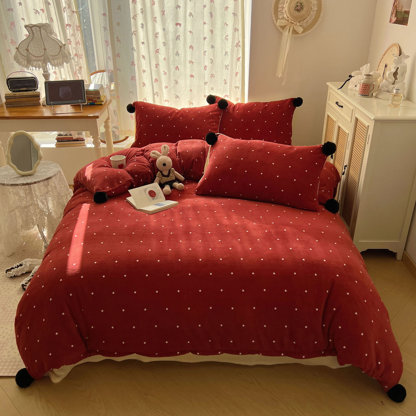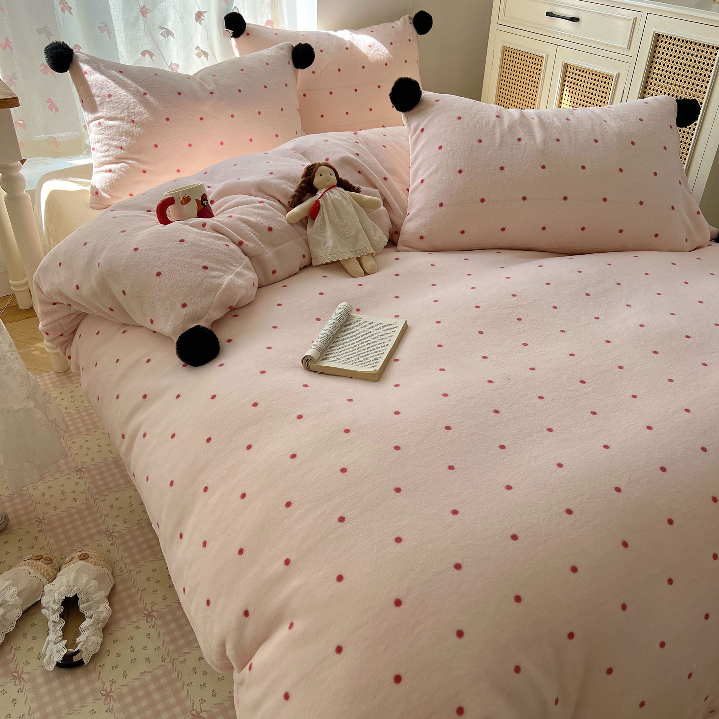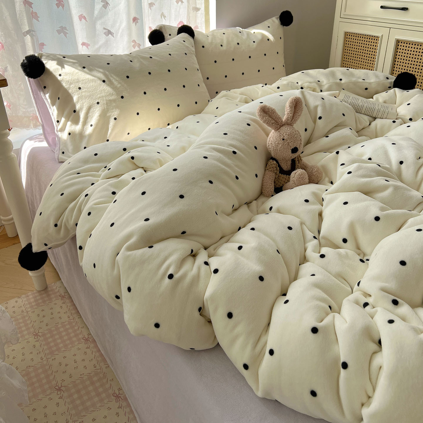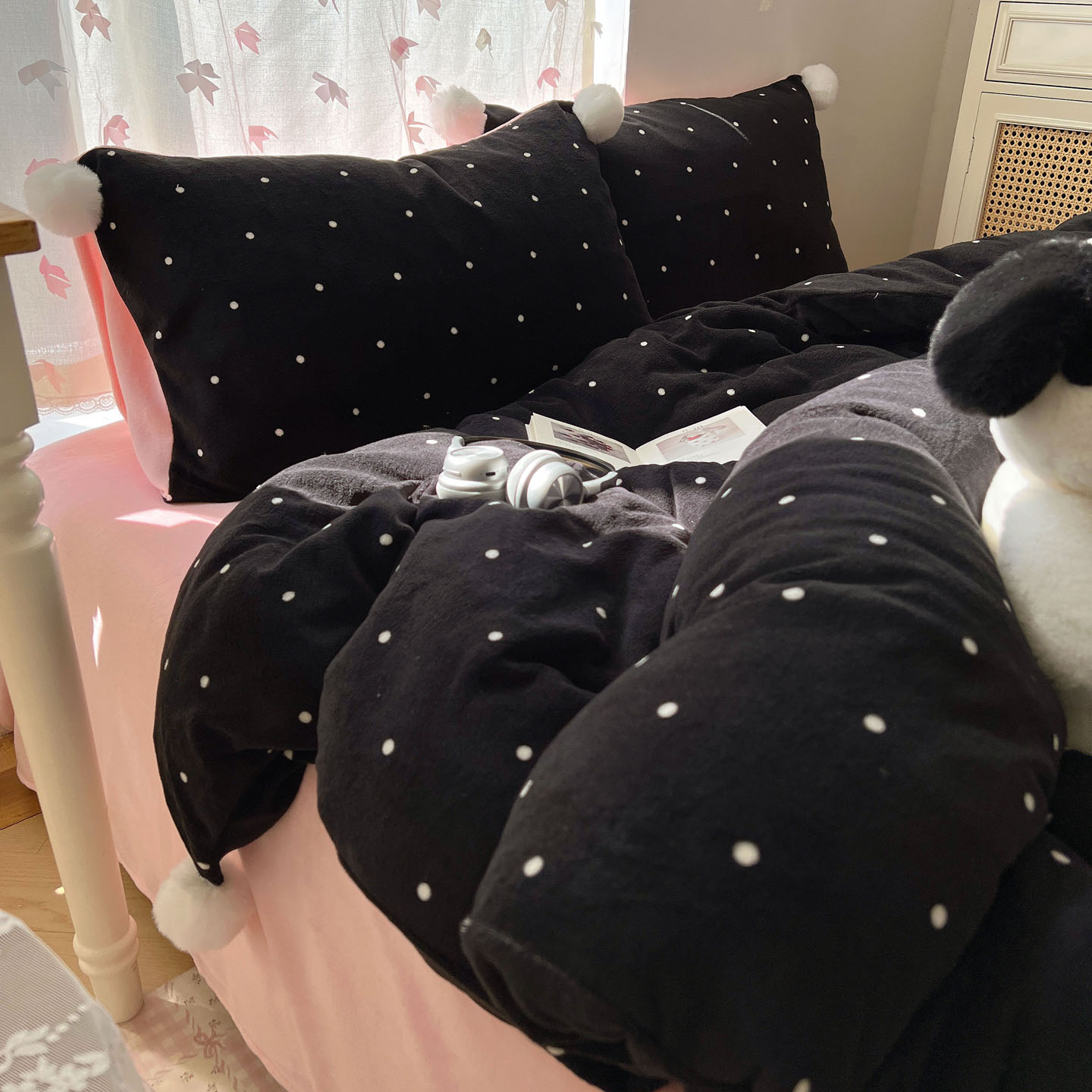 (总)顾里家纺 2025新款chic波点牛奶绒毛球套件