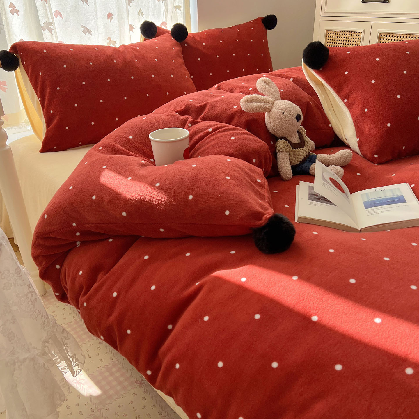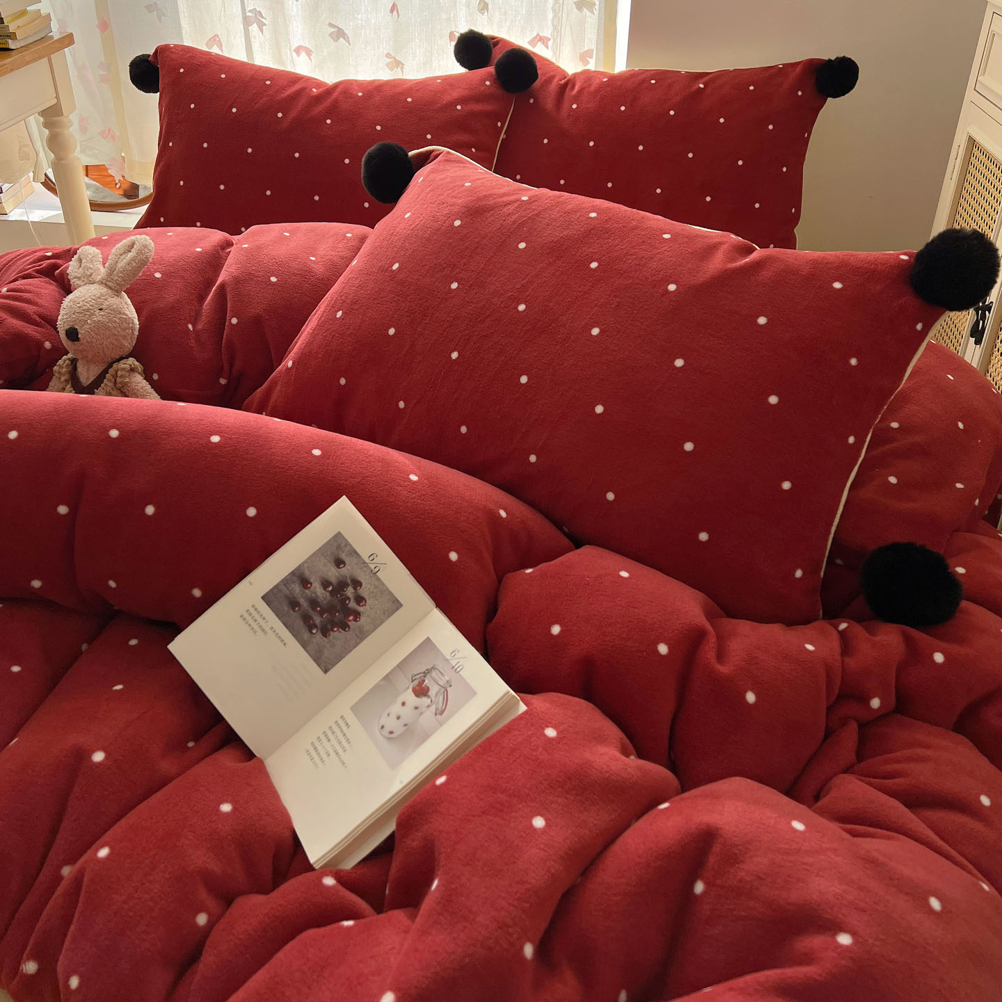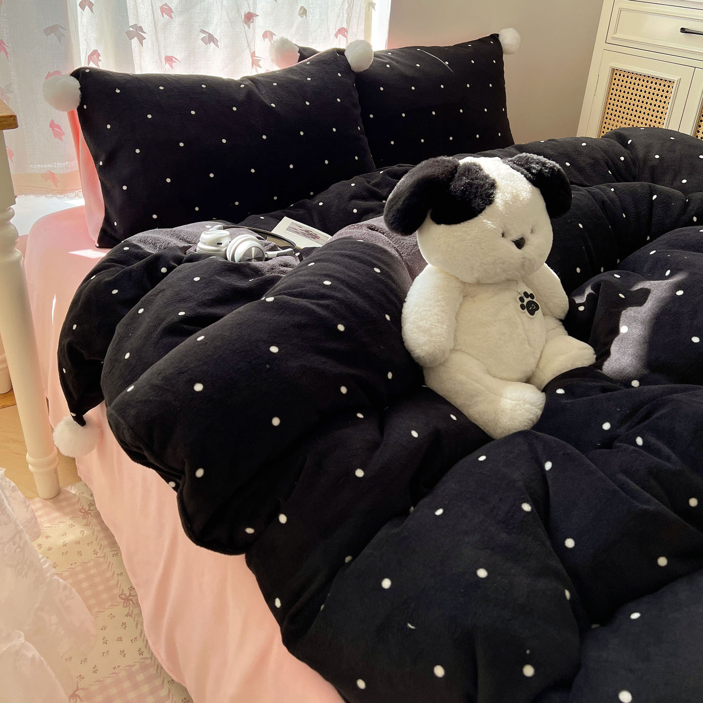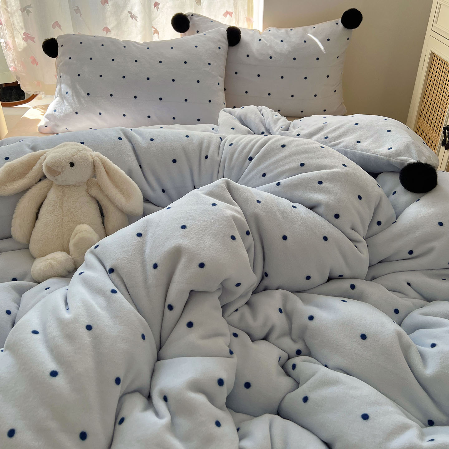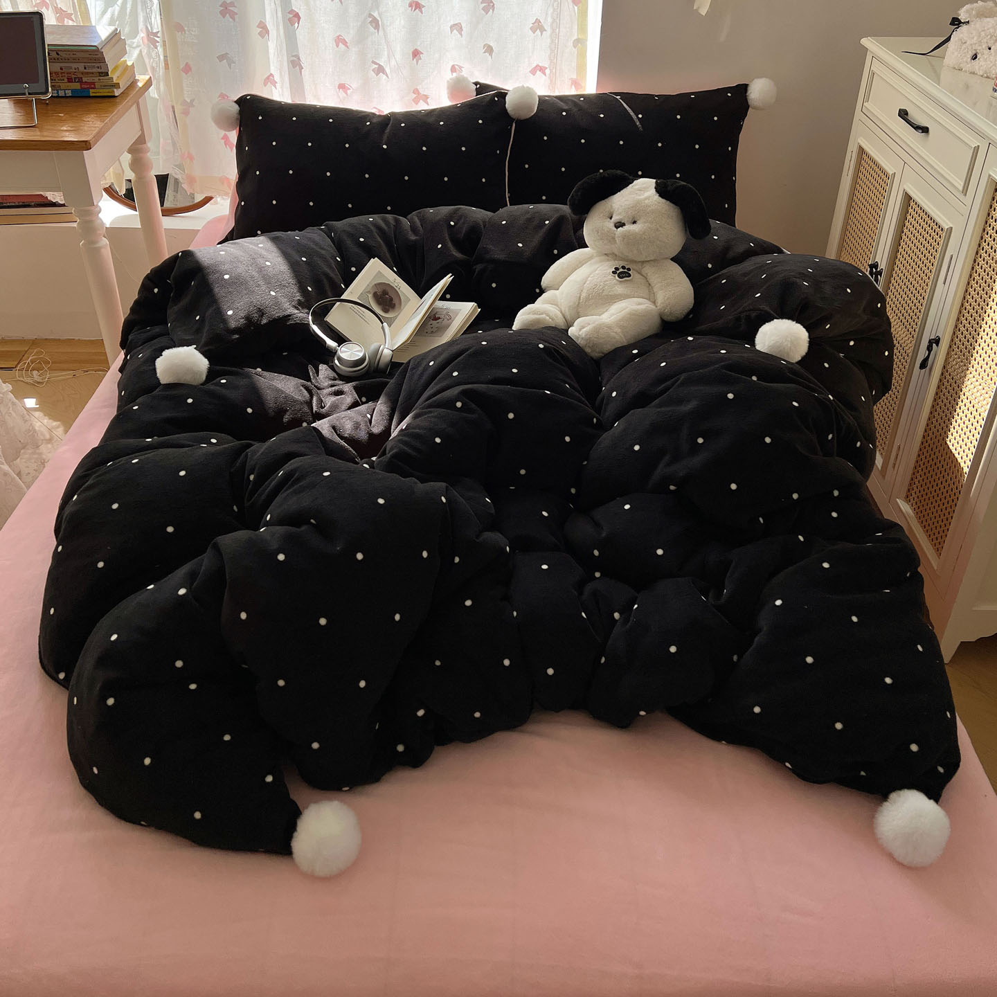 (总)顾里家纺 2025新款chic波点牛奶绒毛球套件