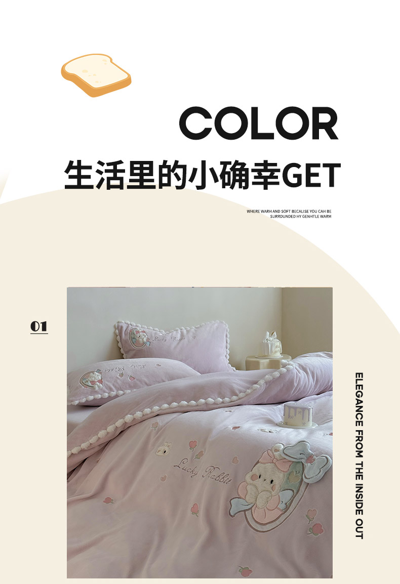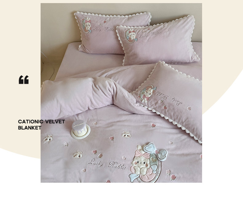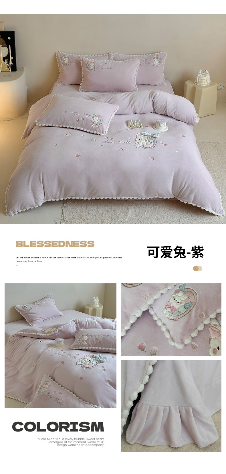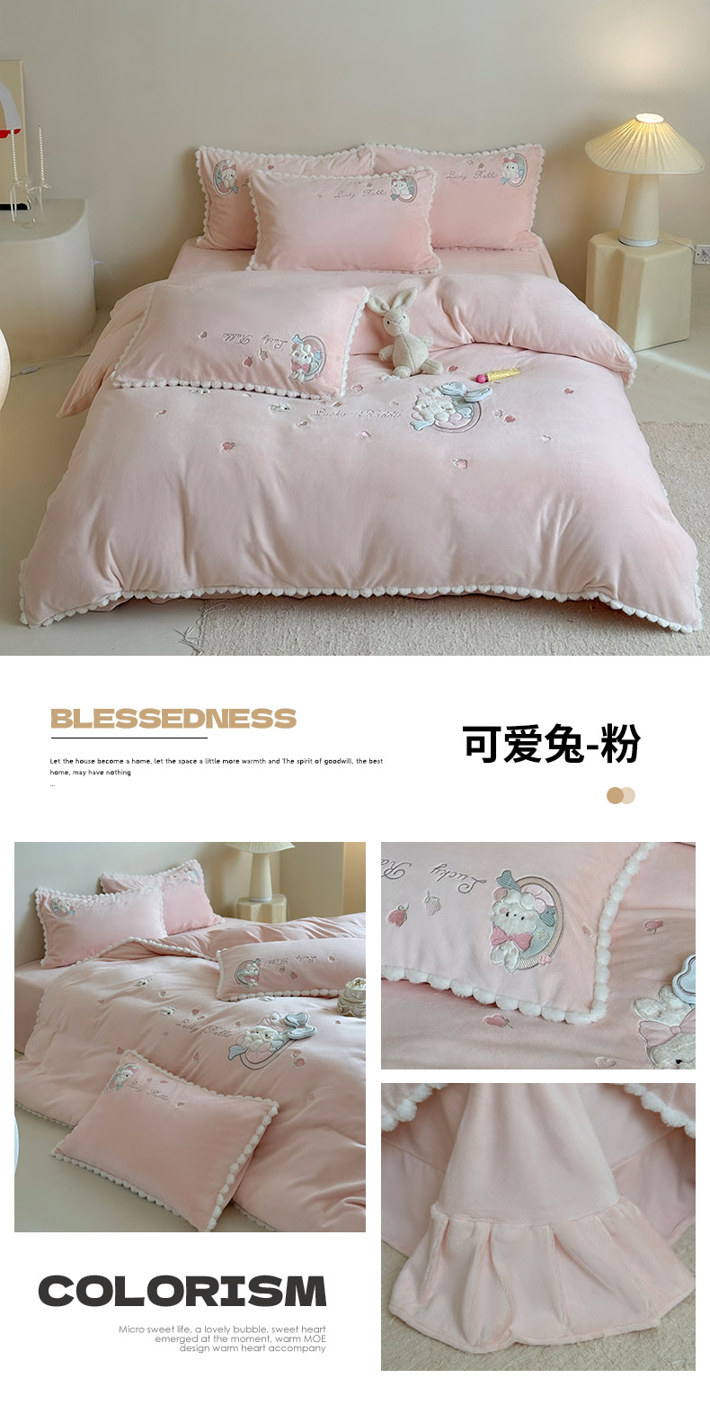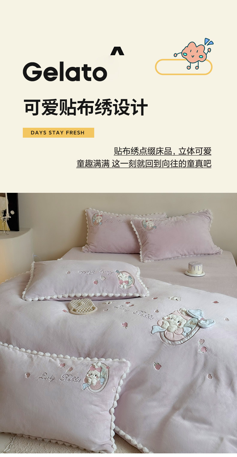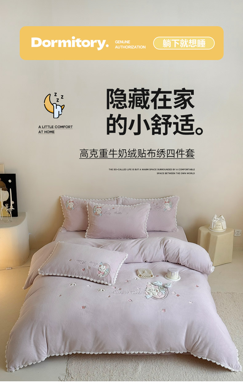 (总)艾唯希家纺 2025新款超柔高克重牛奶绒贴布绣工艺四件套-可爱兔系列