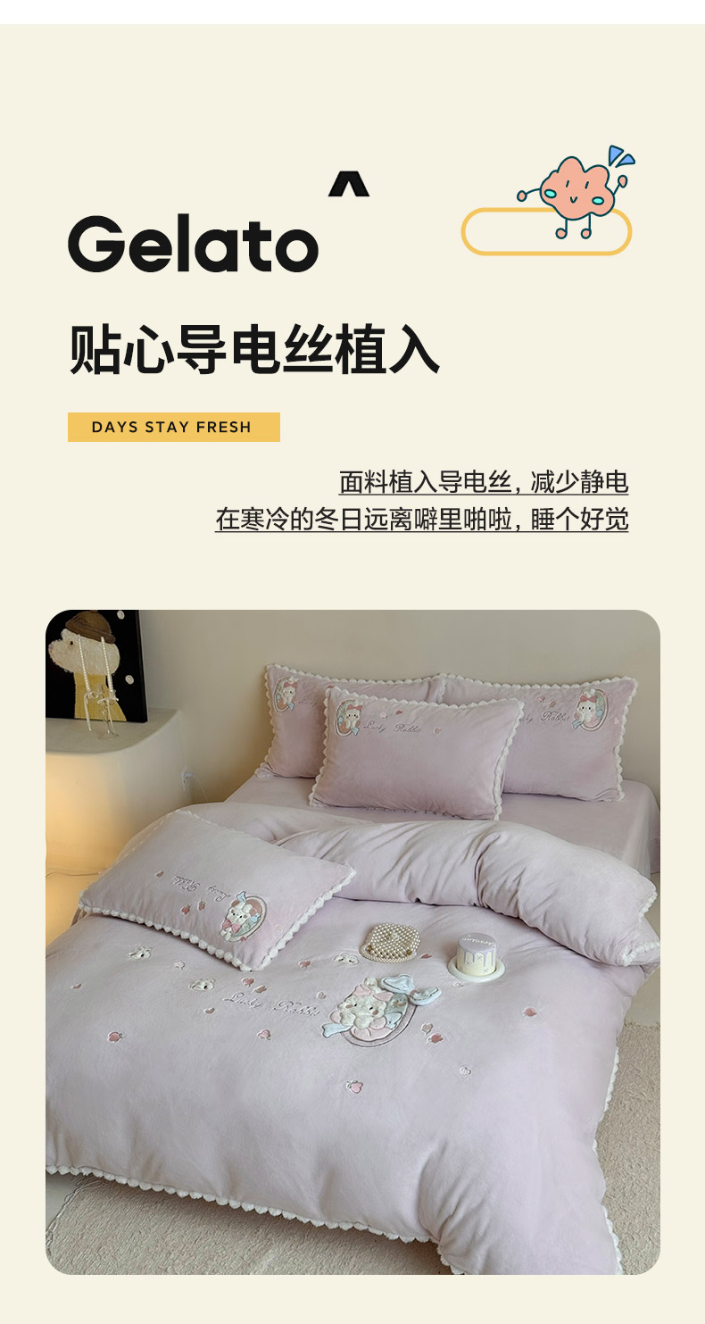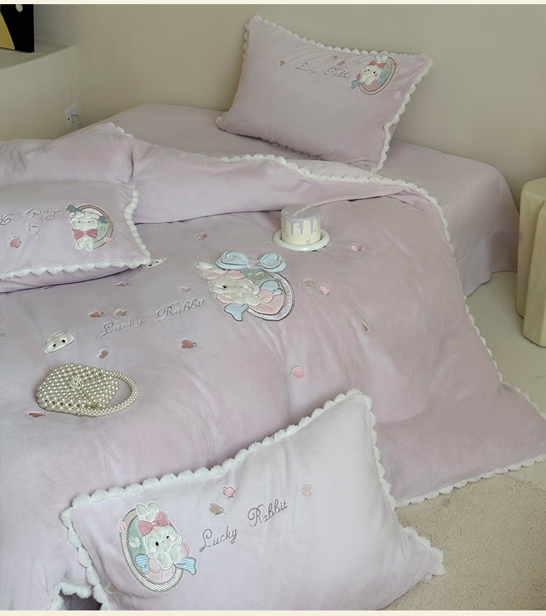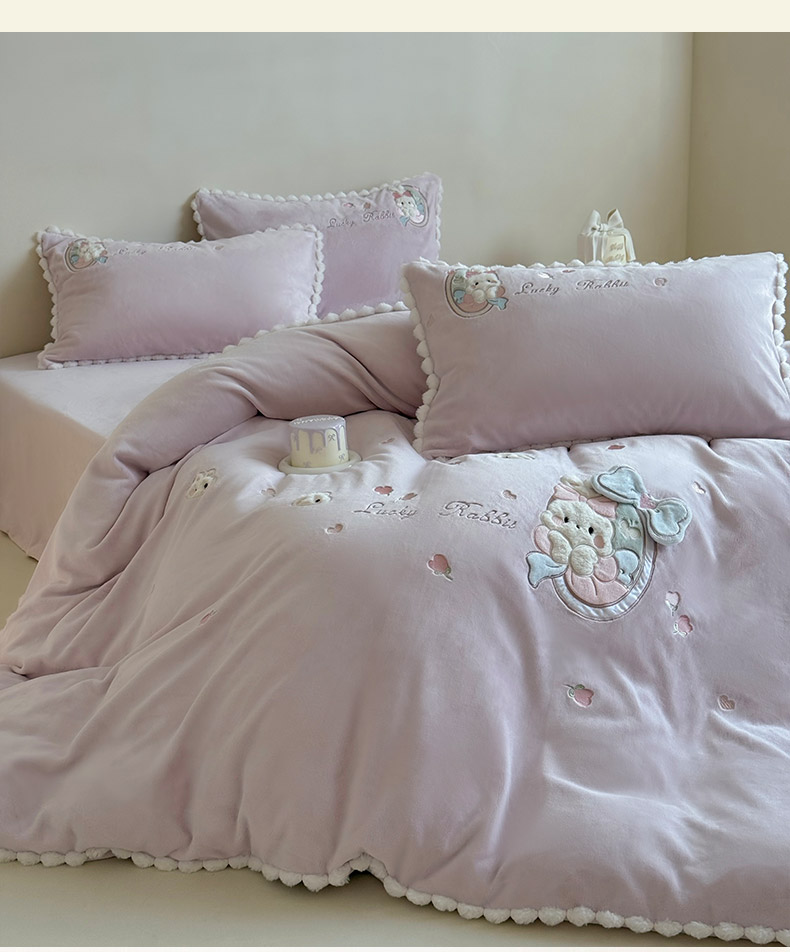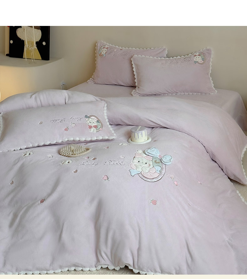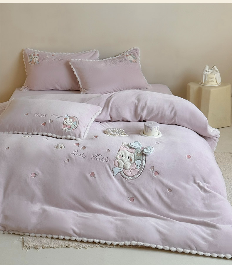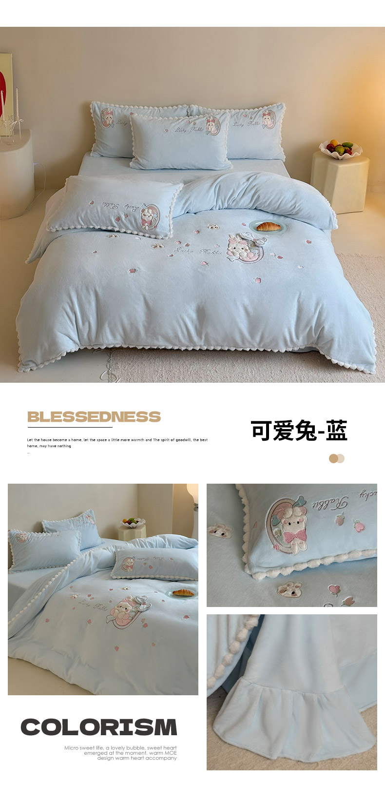 (总)艾唯希家纺 2025新款超柔高克重牛奶绒贴布绣工艺四件套-可爱兔系列