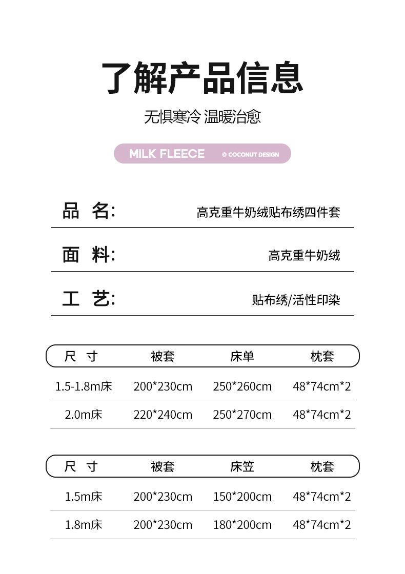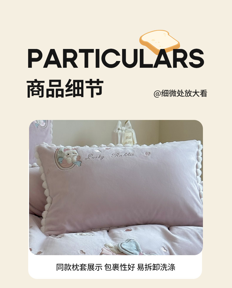 商品名称:(总)艾唯希家纺 2025新款超柔高克重牛奶绒贴布绣工艺四件套-可爱兔系列