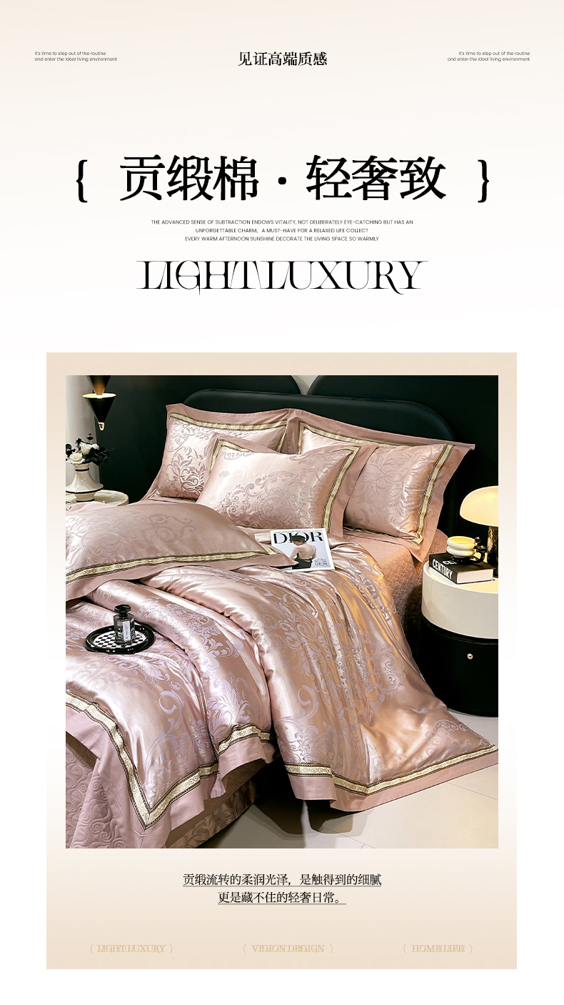 当前位置: 91家纺网 > 商品网购 > 床品套件 > 四件套 > 贡缎全棉四件套 > 小时代家纺 2025新款纯棉贡缎提花夹棉床盖四件套 豪华经典-灰金
