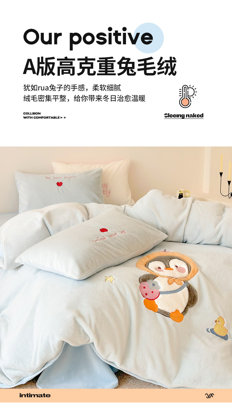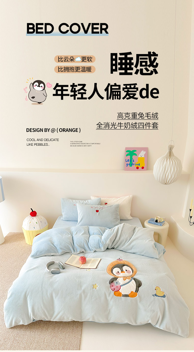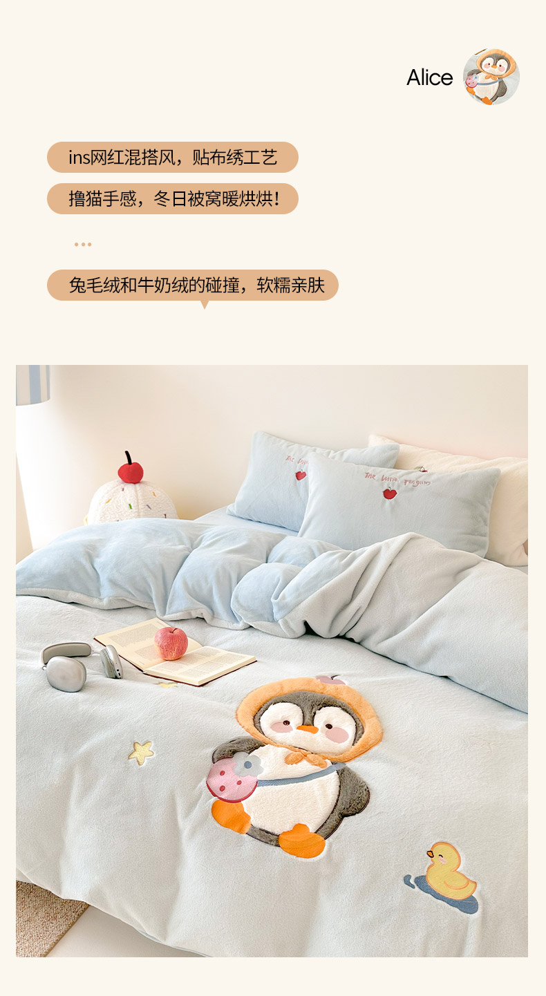 色鬼布艺高端家居主号 2025新款兔毛绒牛奶绒四件套系列 快乐企鹅