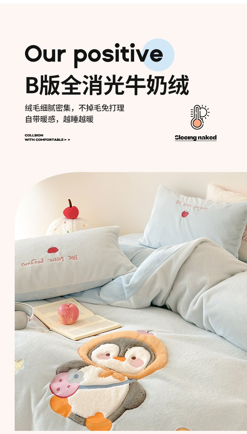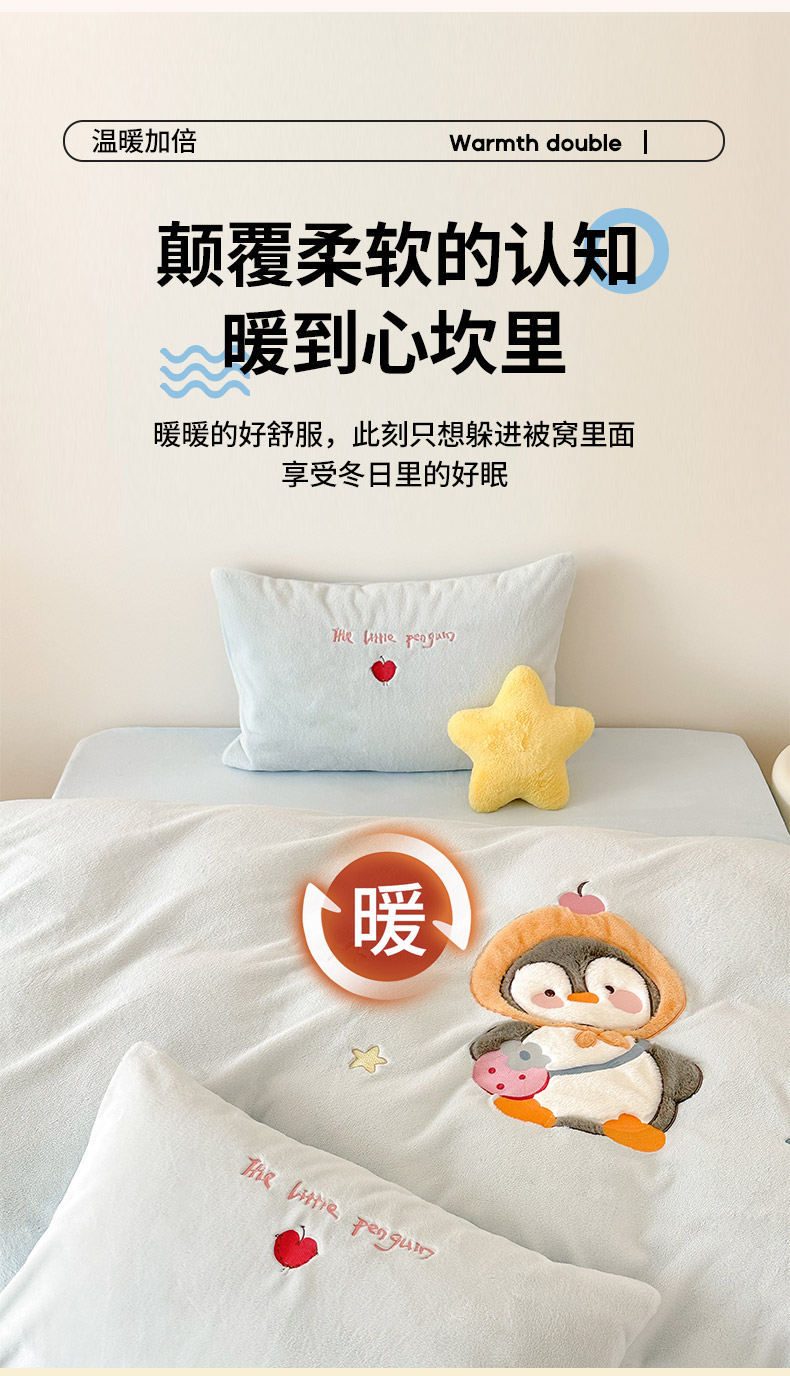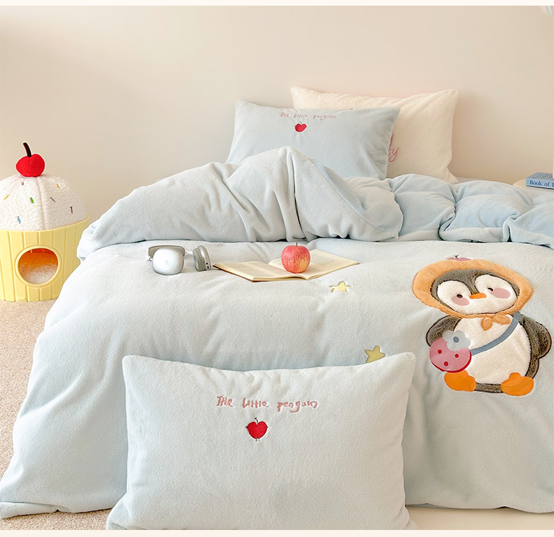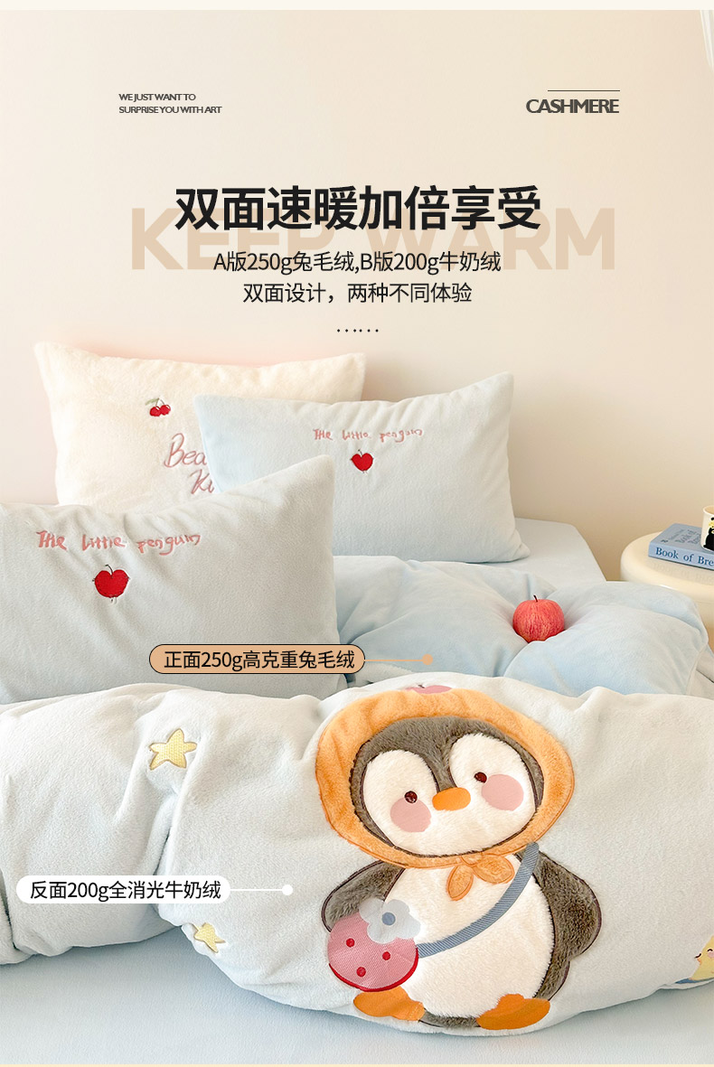 色鬼布艺高端家居主号 2025新款兔毛绒牛奶绒四件套系列 快乐企鹅