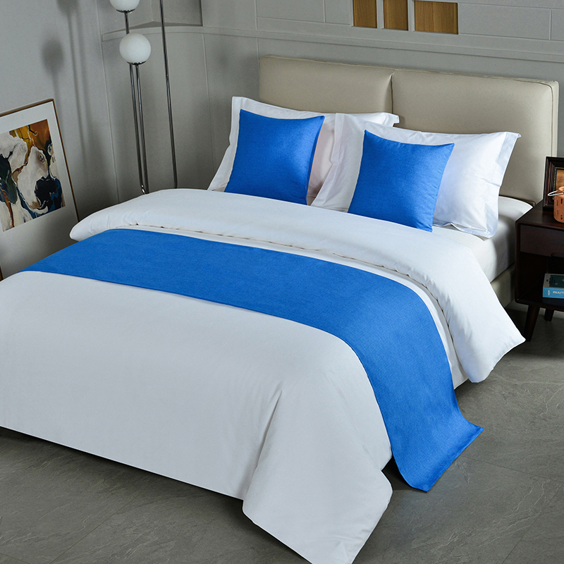 万花酒店布草 2025新款纯色双拼织带床尾巾 纯色湖蓝,纯色湖蓝