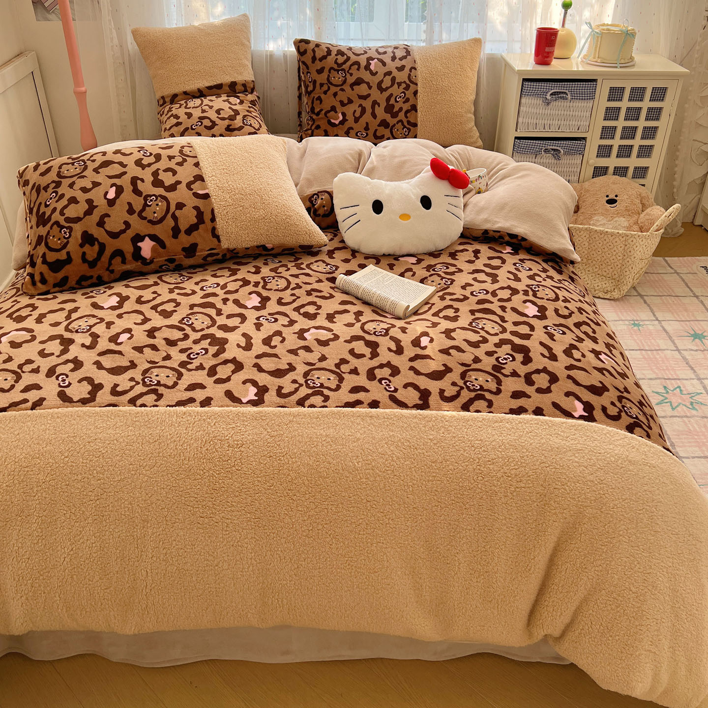 当前位置: 91家纺网 > 商品网购 > 床品套件 > 四件套 > 牛奶绒四件套 > (总)顾里家纺 2025新款卡通豹纹喵羊羔拼接牛奶绒四件套