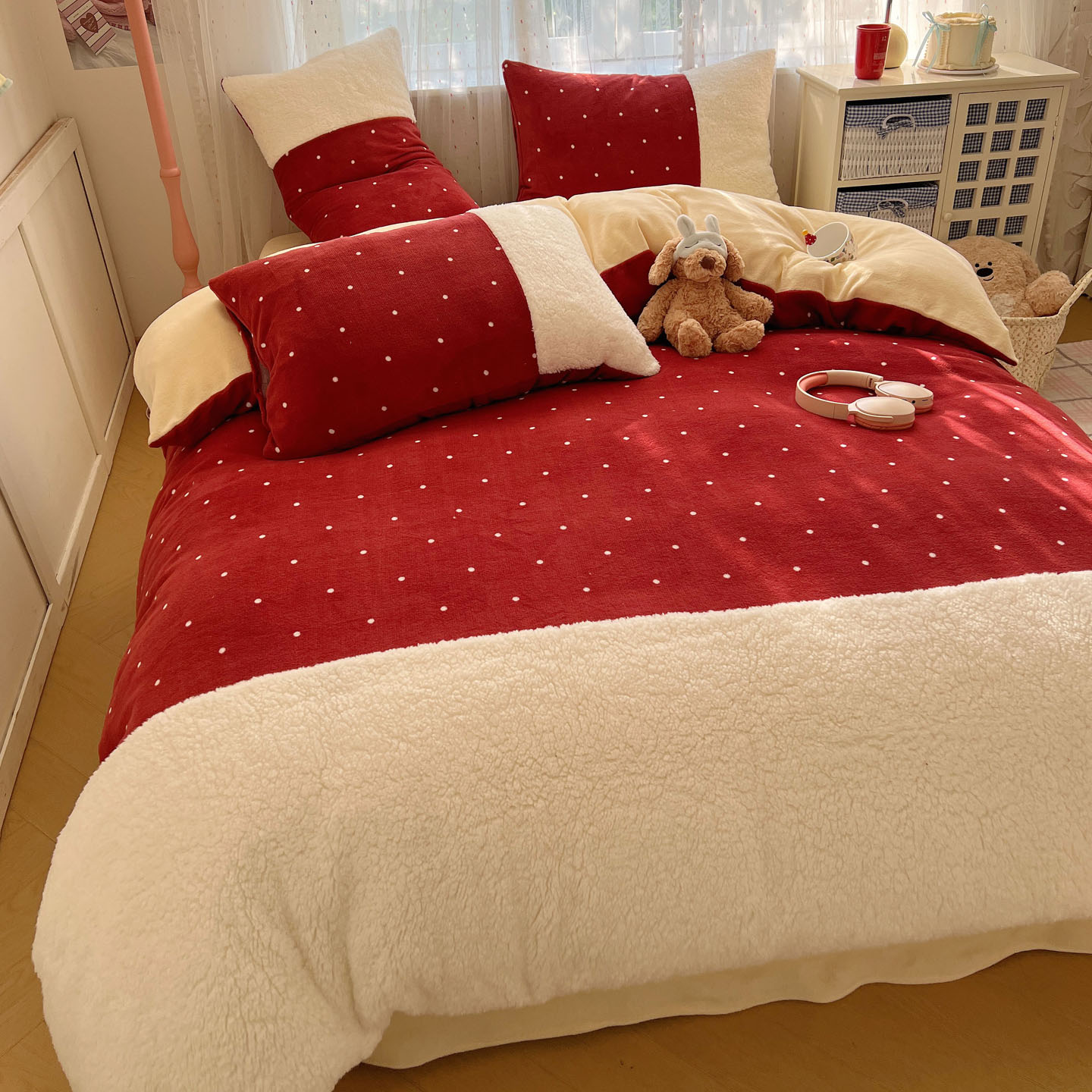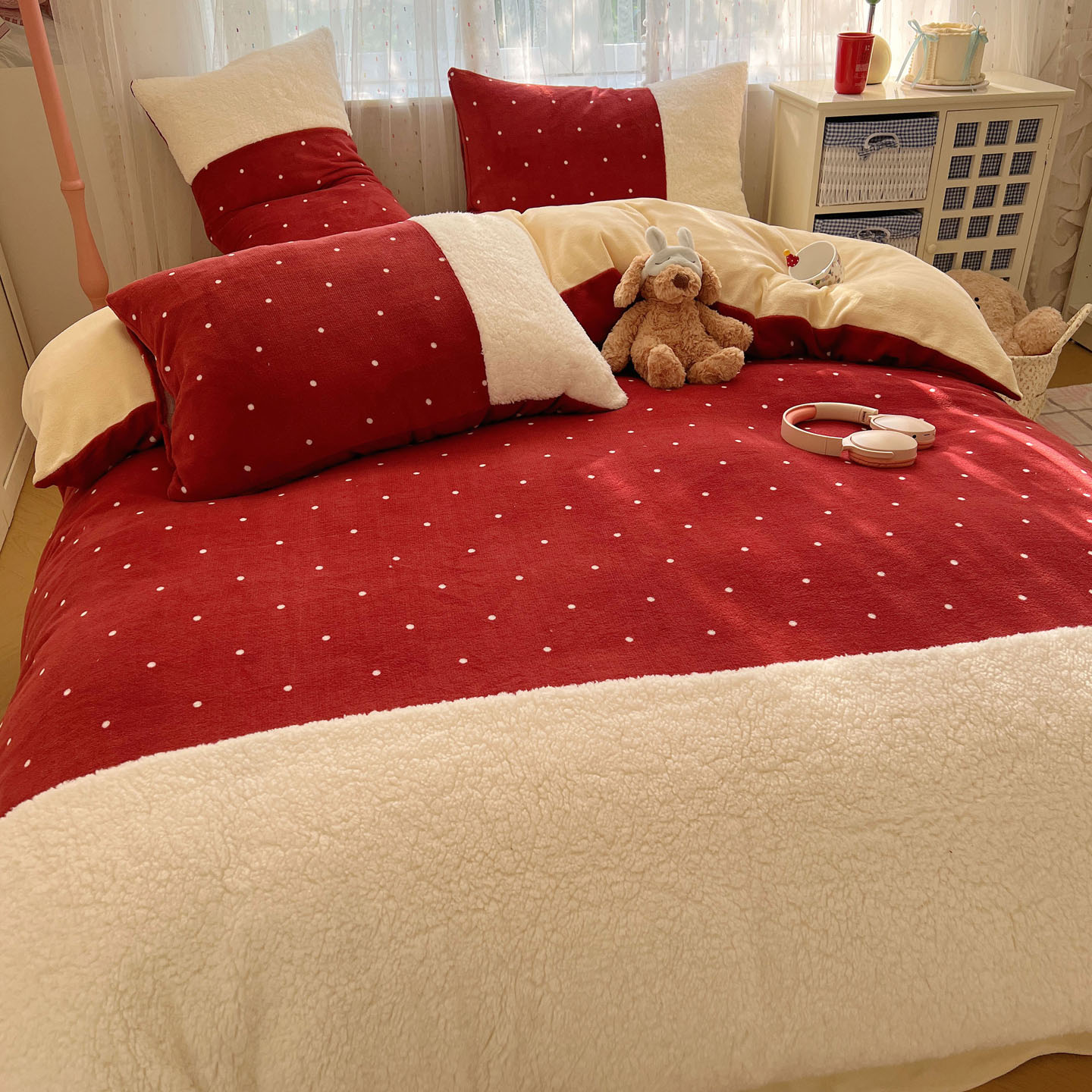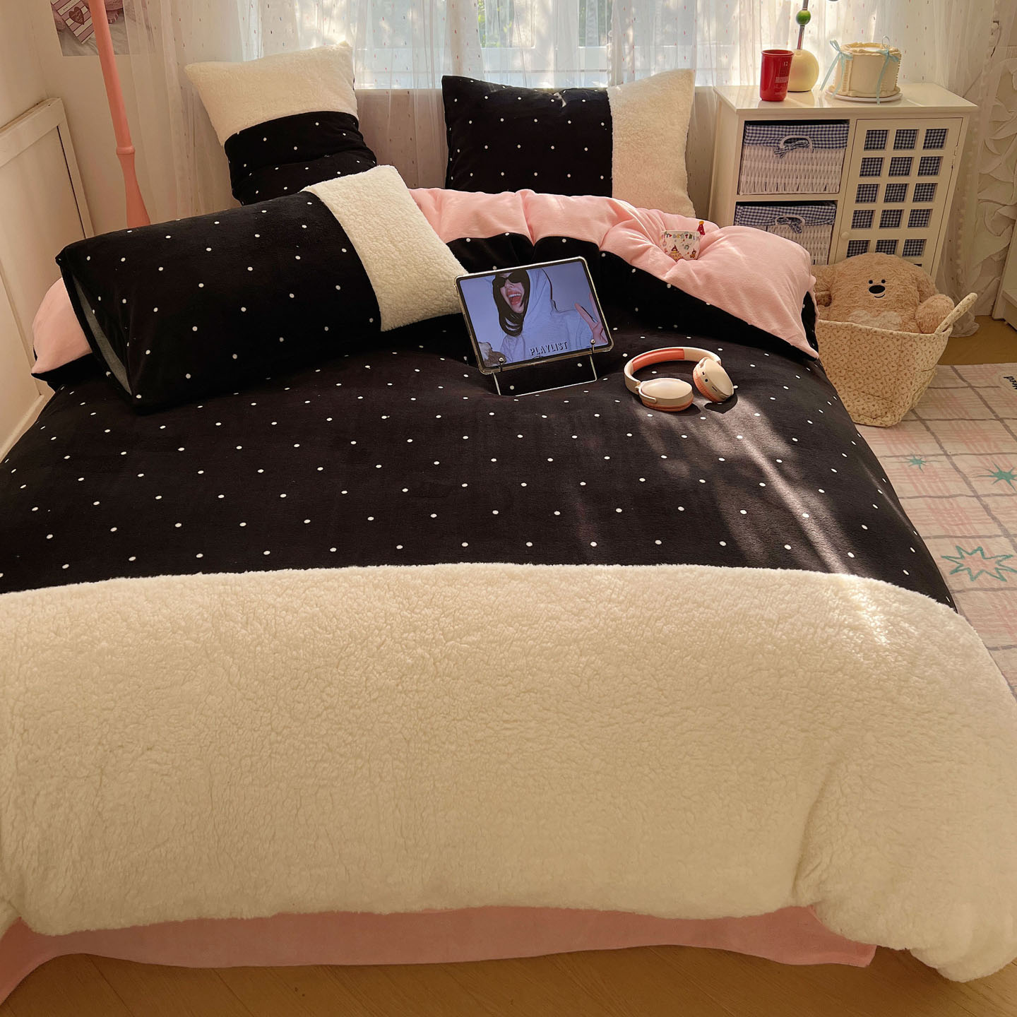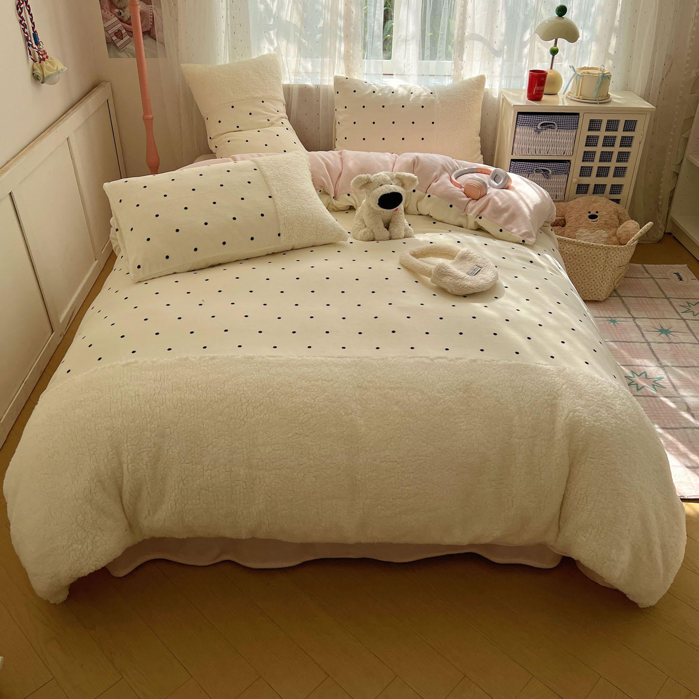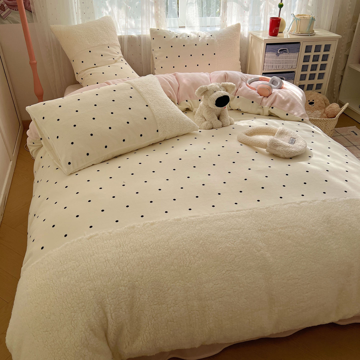 当前位置: 91家纺网 > 商品网购 > 床品套件 > 四件套 > 牛奶绒四件套 > 顾里家纺 2025新款波点羊羔拼接牛奶绒四件套小波点 蓝波点