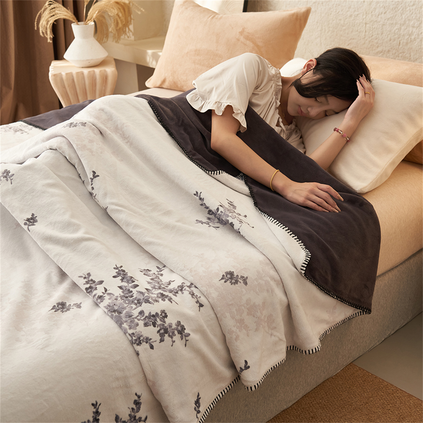 (总)寐绸家纺 2025新款双面牛奶绒北欧风功能毛毯,米驼+奶茶咖,宾利蓝+浅灰,豆沙+浅灰,焦糖+米驼,米白+浅水绿,牛油果绿+浅灰,浅灰+米金,浅水绿+橄榄绿,组合图