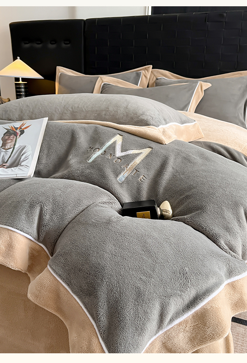 遇见家居生活馆 2025新款A类牛奶绒玛利亚绒宽边四件套(控价:标准188,加大198,床笠款193) 经典灰+香槟