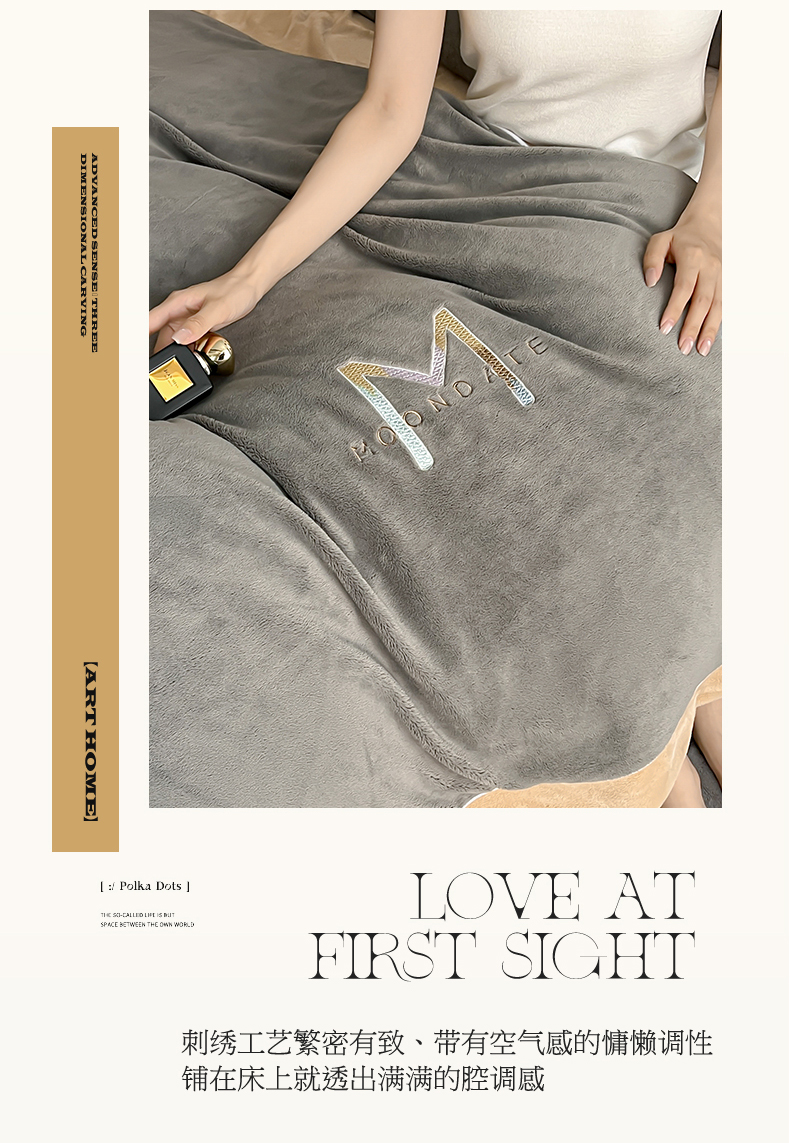 (总)遇见家居生活馆 2025新款A类牛奶绒雕花四件套-羽飞舞,卡诺粉+香槟,奶芋色+经典灰,奶芋色+杏仁,香草灰+经典灰,婴儿蓝+星辰灰