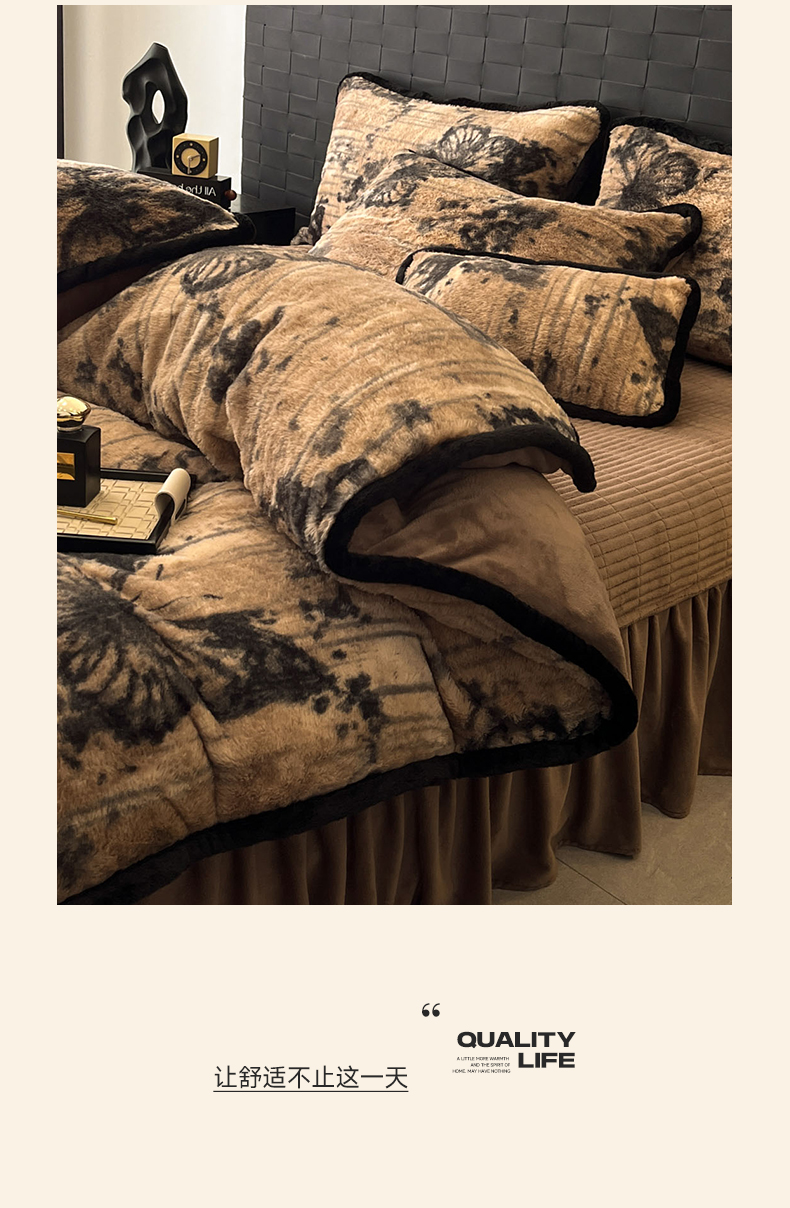 当前位置: 91家纺网 > 商品网购 > 床品套件 > 四件套 > 兔毛绒四件套 > 大元 2025新款亲肤舒适兔绒包边美拉德系兔绒四件套 墨班幻花