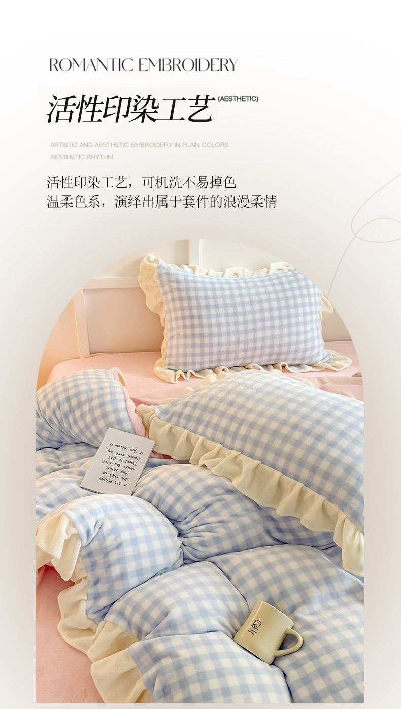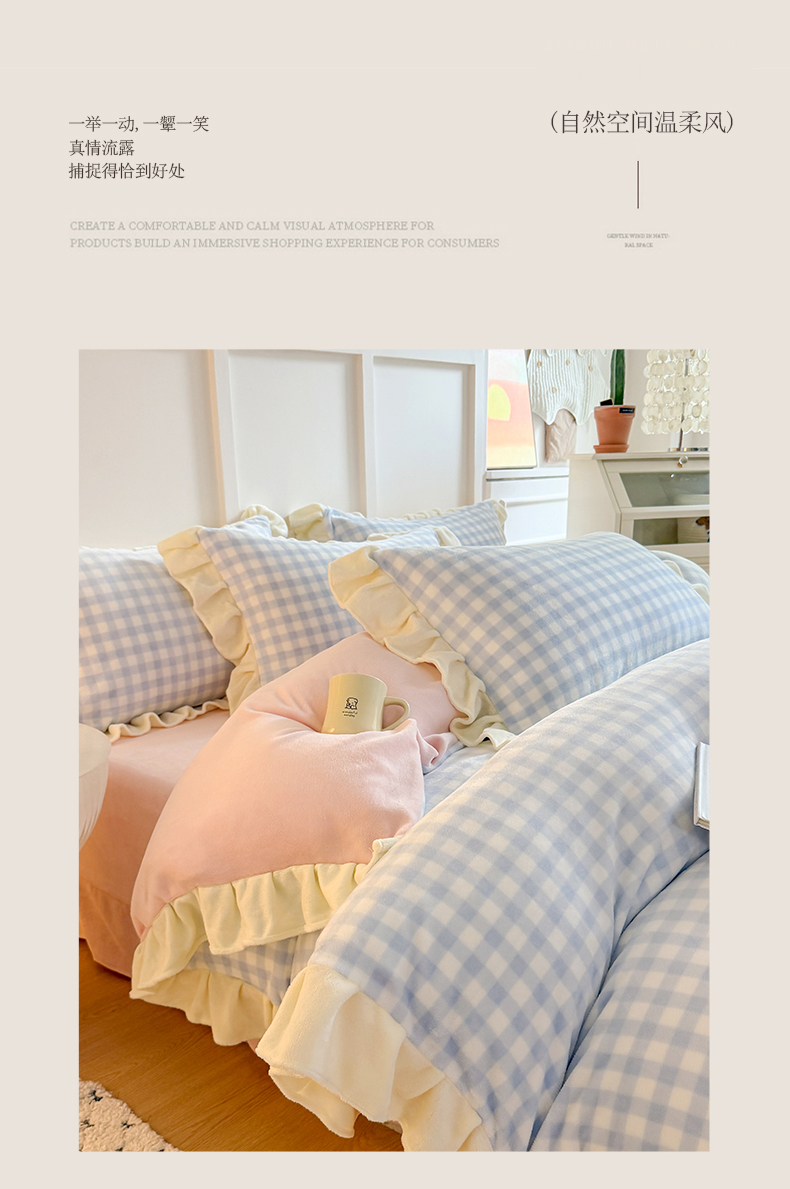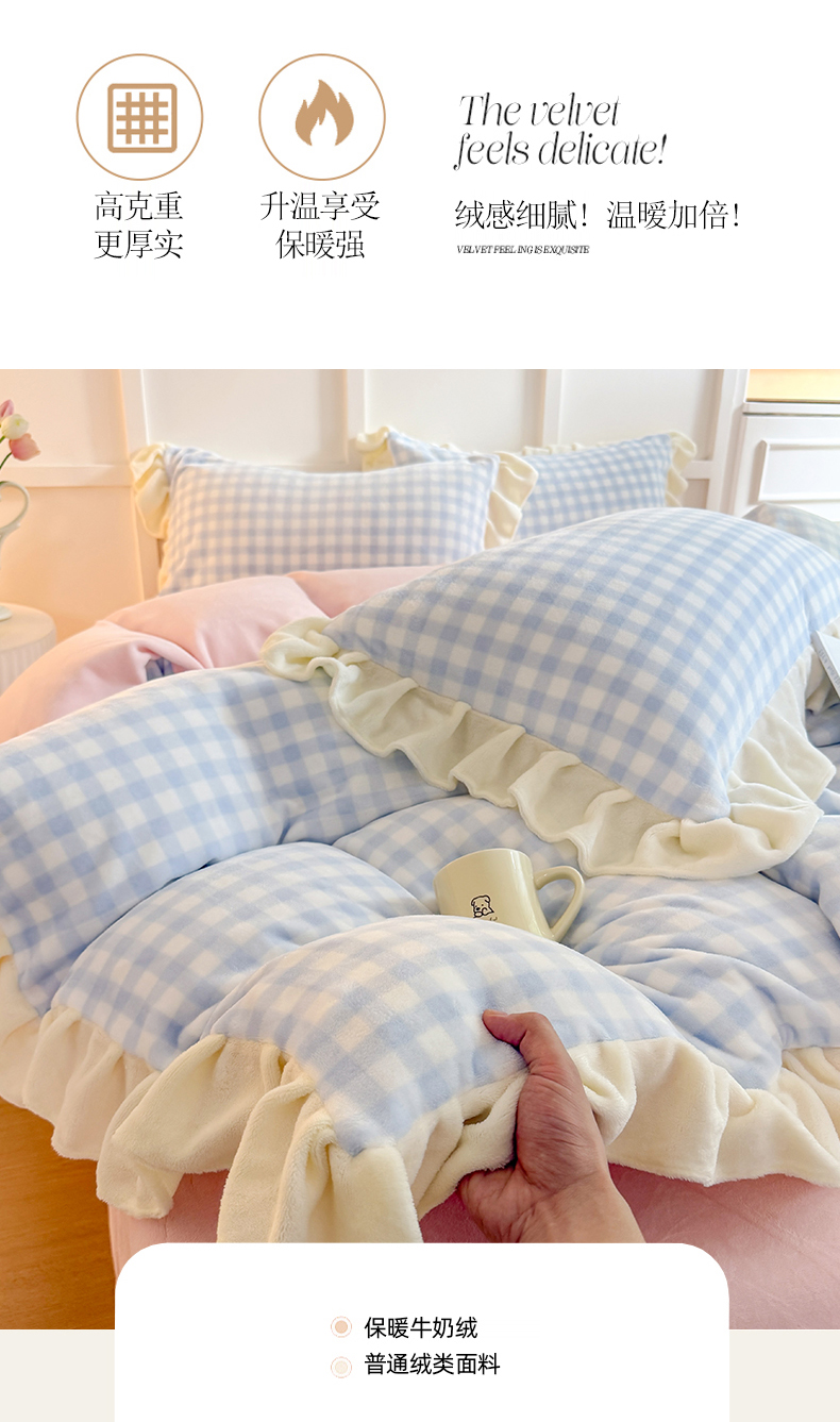 当前位置: 91家纺网 > 商品网购 > 床品套件 > 四件套 > 牛奶绒四件套 > 艾特你 2025新款200g全工艺牛奶绒花边款四件套吊边床单 花边绒-天蓝格