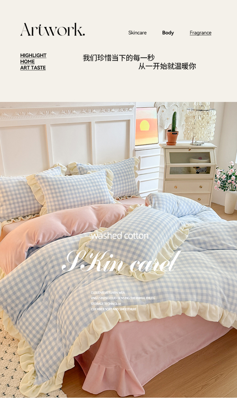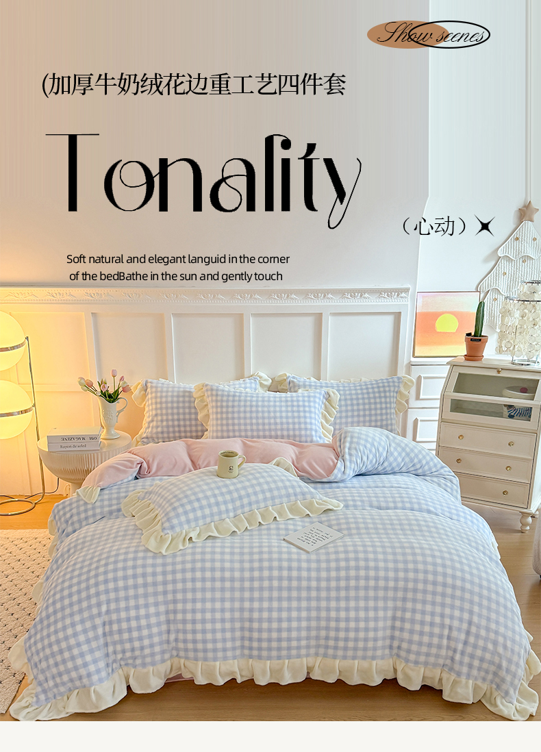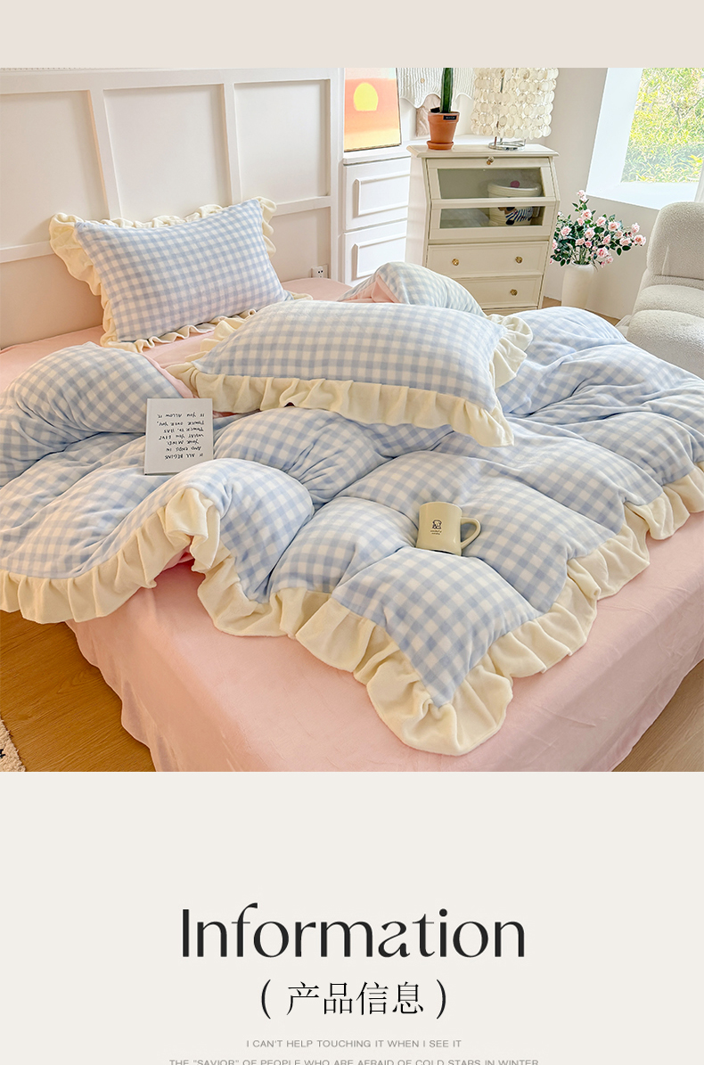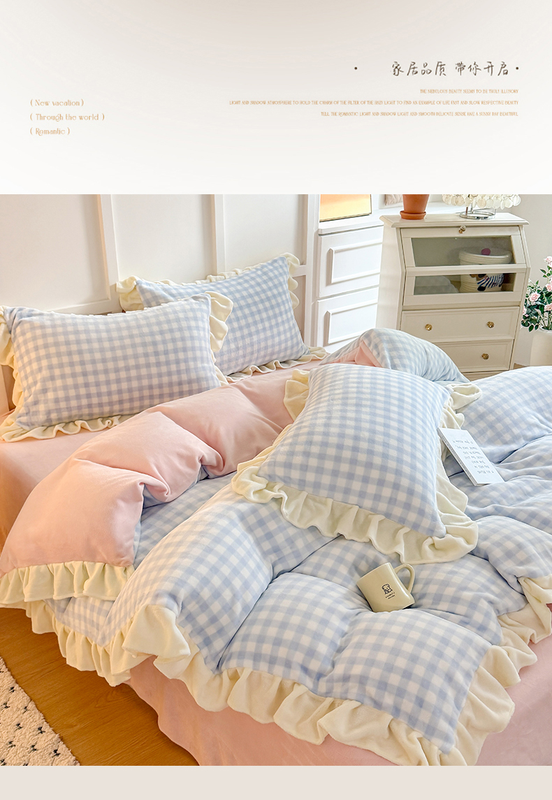 当前位置: 91家纺网 > 商品网购 > 床品套件 > 四件套 > 牛奶绒四件套 > 艾特你 2025新款200g全工艺牛奶绒花边款四件套吊边床单 花边绒-天蓝格