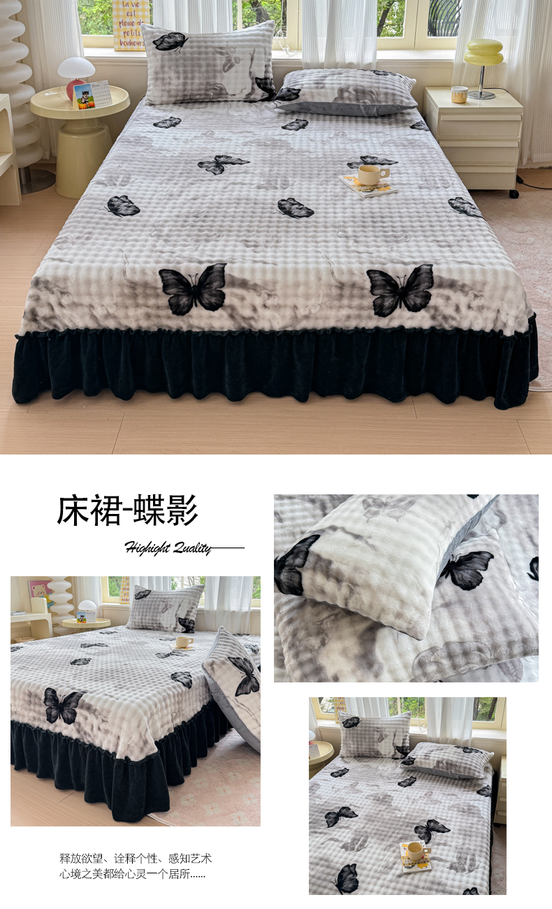 商品名称:爱多多家居 2025新款兔兔泡泡牛奶绒床裙单品床裙床裙单件三件套 床裙-蝶影