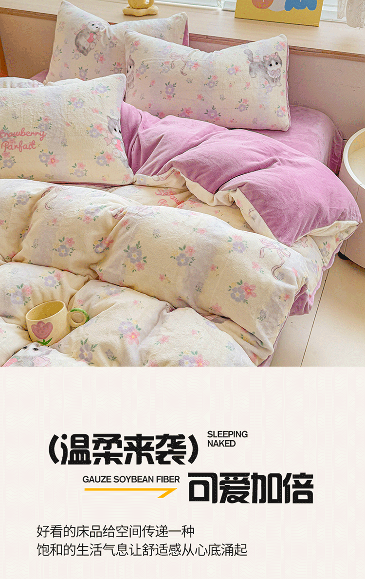 当前位置: 91家纺网 > 商品网购 > 床品套件 > 四件套 > 牛奶绒四件套 > 梦舒阳家纺 2025牛奶绒四件套牛奶绒单被套牛奶绒床笠款四件套小清新可爱套件 一帘幽梦
